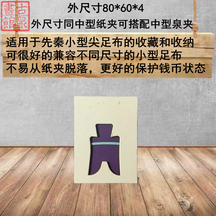 适用于先秦小型尖足布的收藏和收纳,可很好的兼容不同尺寸的小型足布,不易从纸夹脱落,更好的保护钱币状态