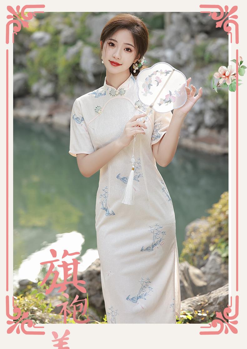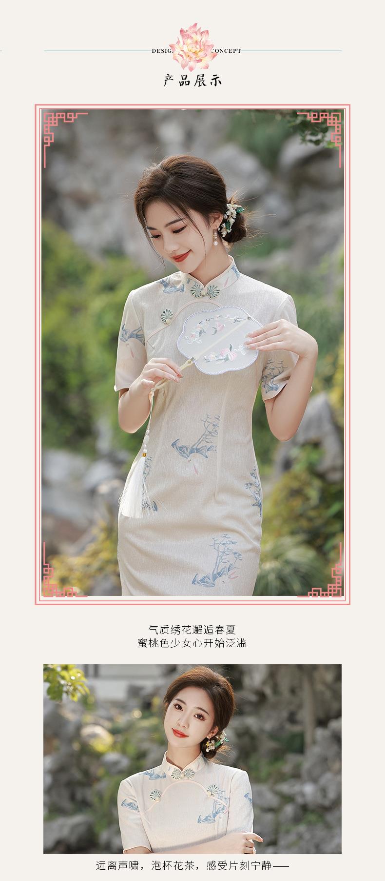2023夏款复合蕾丝印花兔年兔子旗袍连衣裙 文艺少女改良古法旗袍