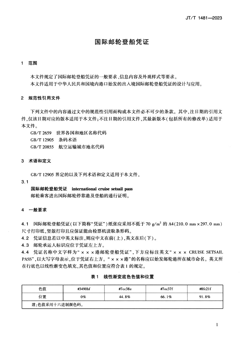 书名:国际邮轮登船凭证(JT/T 1481—2023)