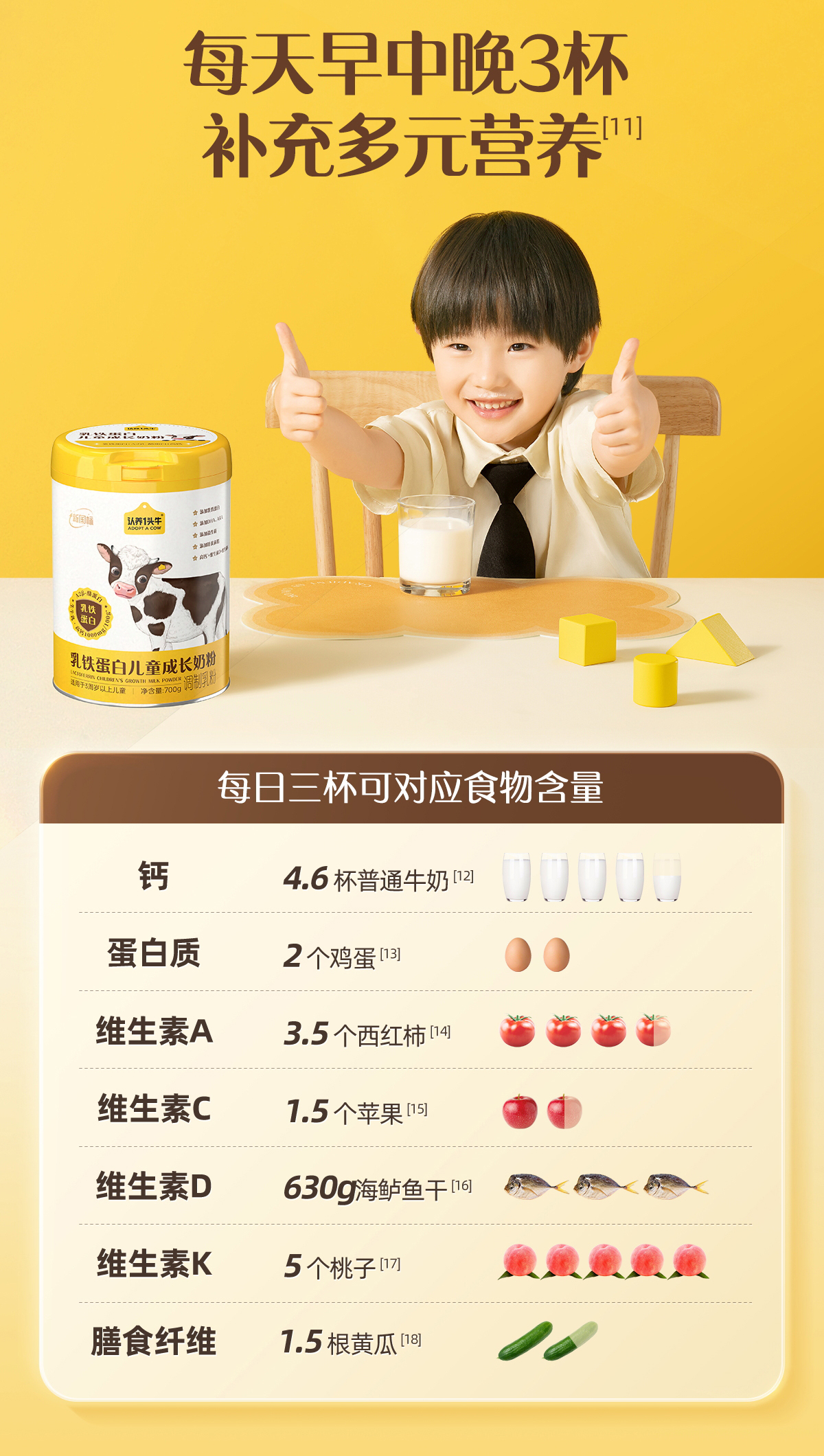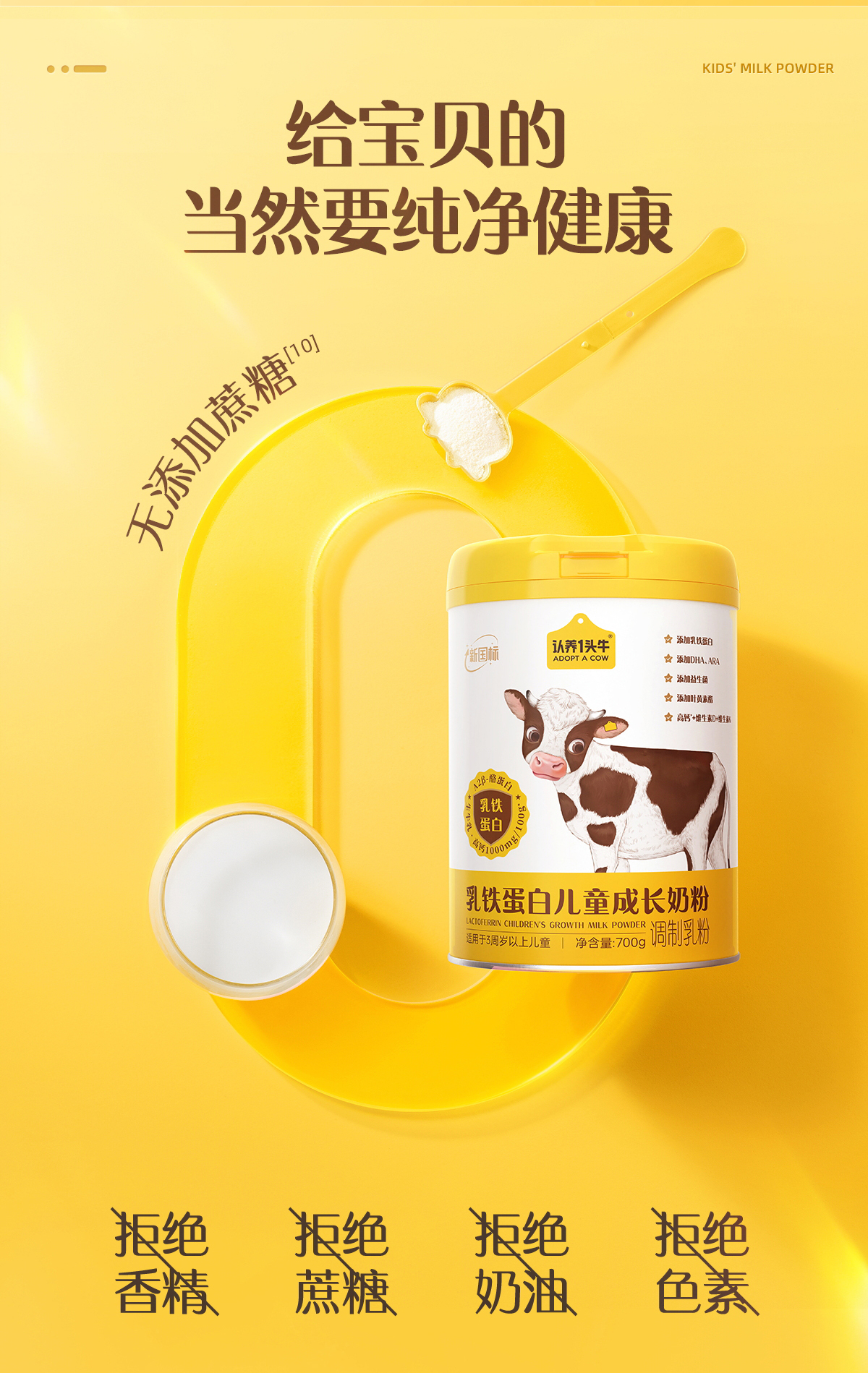 【团长限时活动】认养一头牛棒棒哒乳铁蛋白儿童成长奶粉700g*1罐