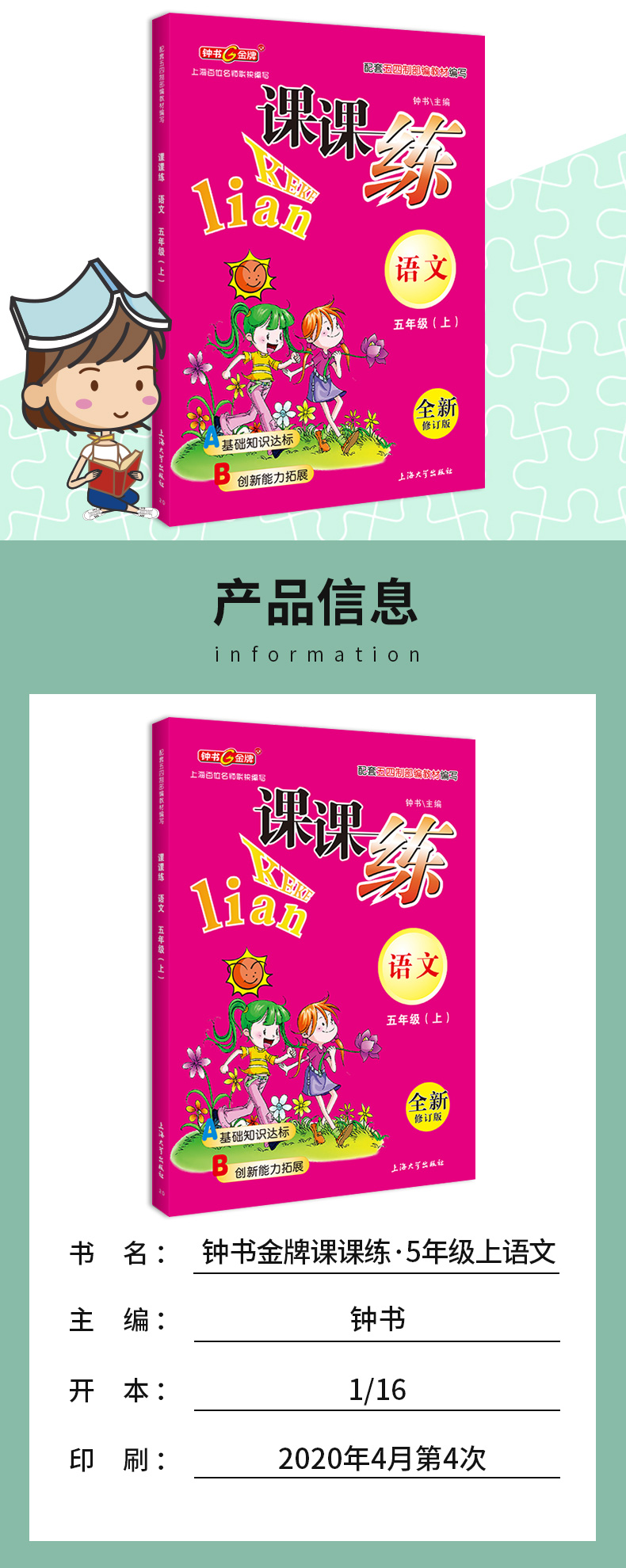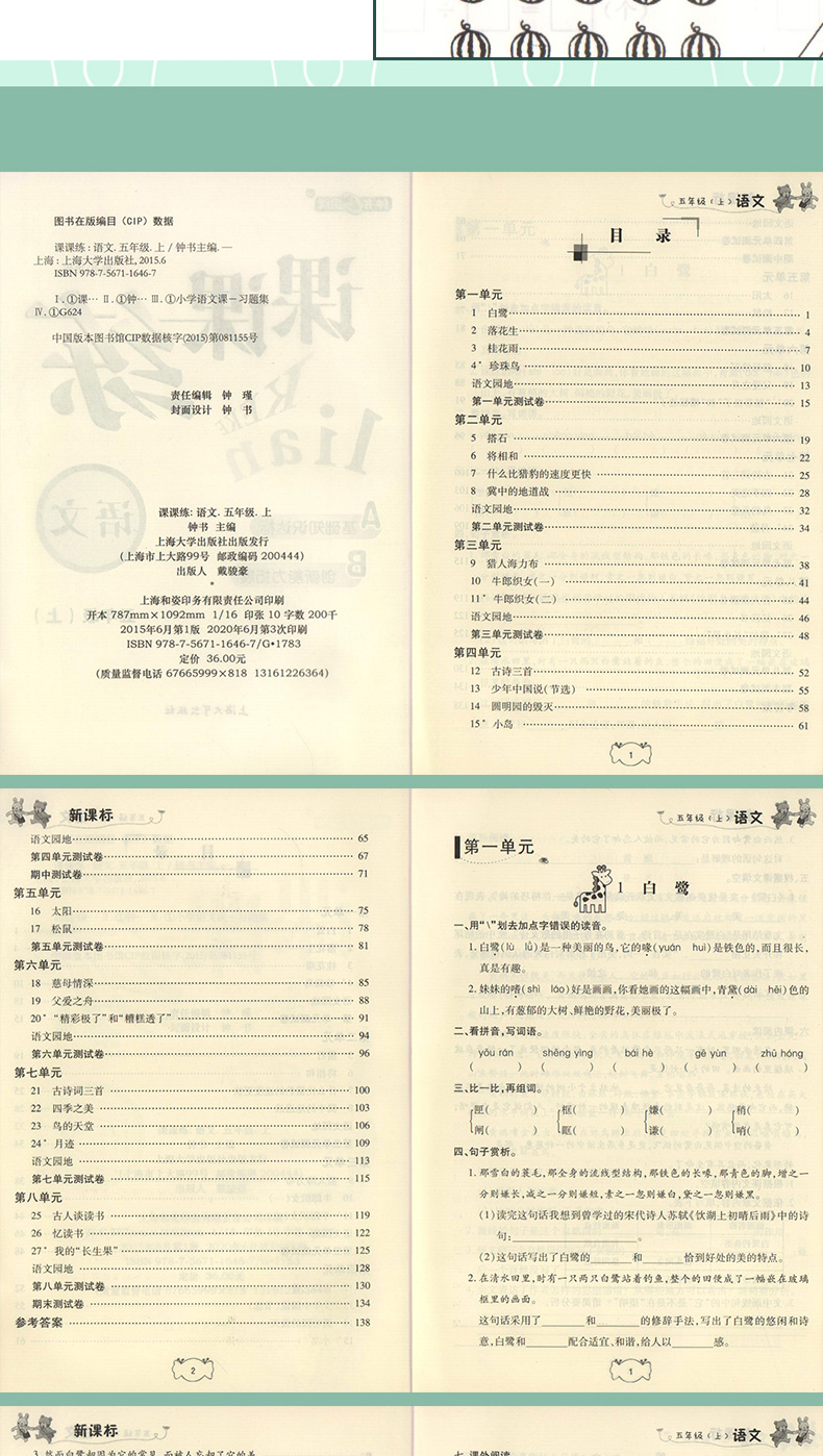 钟书金牌 课课练 部编版 语文 5年级上/五年级第一学期 语文 5语上 统编版上海小学教辅课后配套练习上海大学出版社