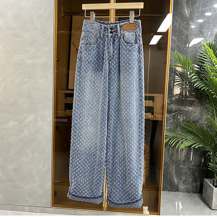 黛唯梵直筒牛仔裤女2022年夏季新款设计感女小众复古宽松百搭高腰阔腿裤