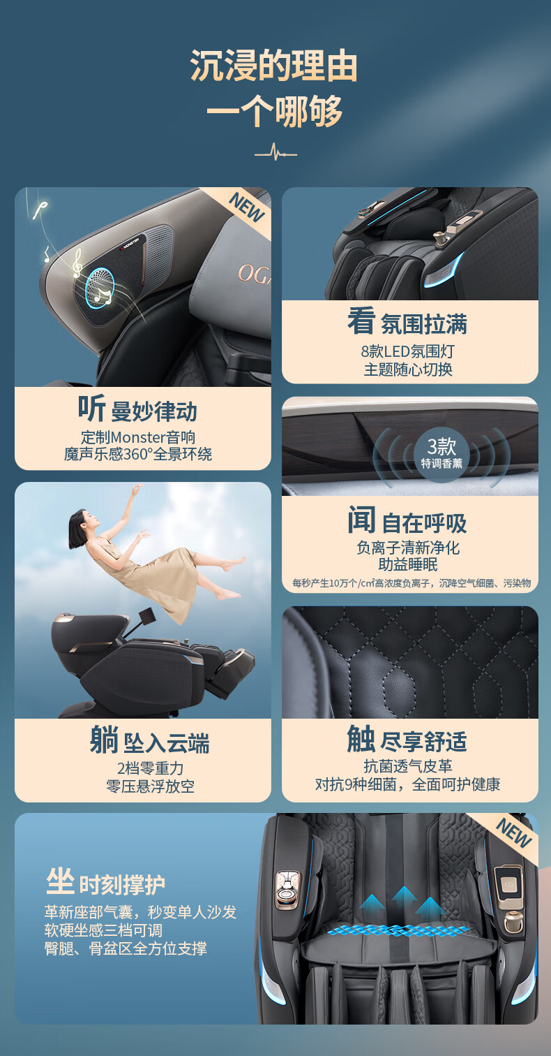 奥佳华(OGAWA)2026智能AI全身多功能按摩椅彭于晏推荐高端全自动小型太空舱中医按摩推拿豪华头等舱OG9598