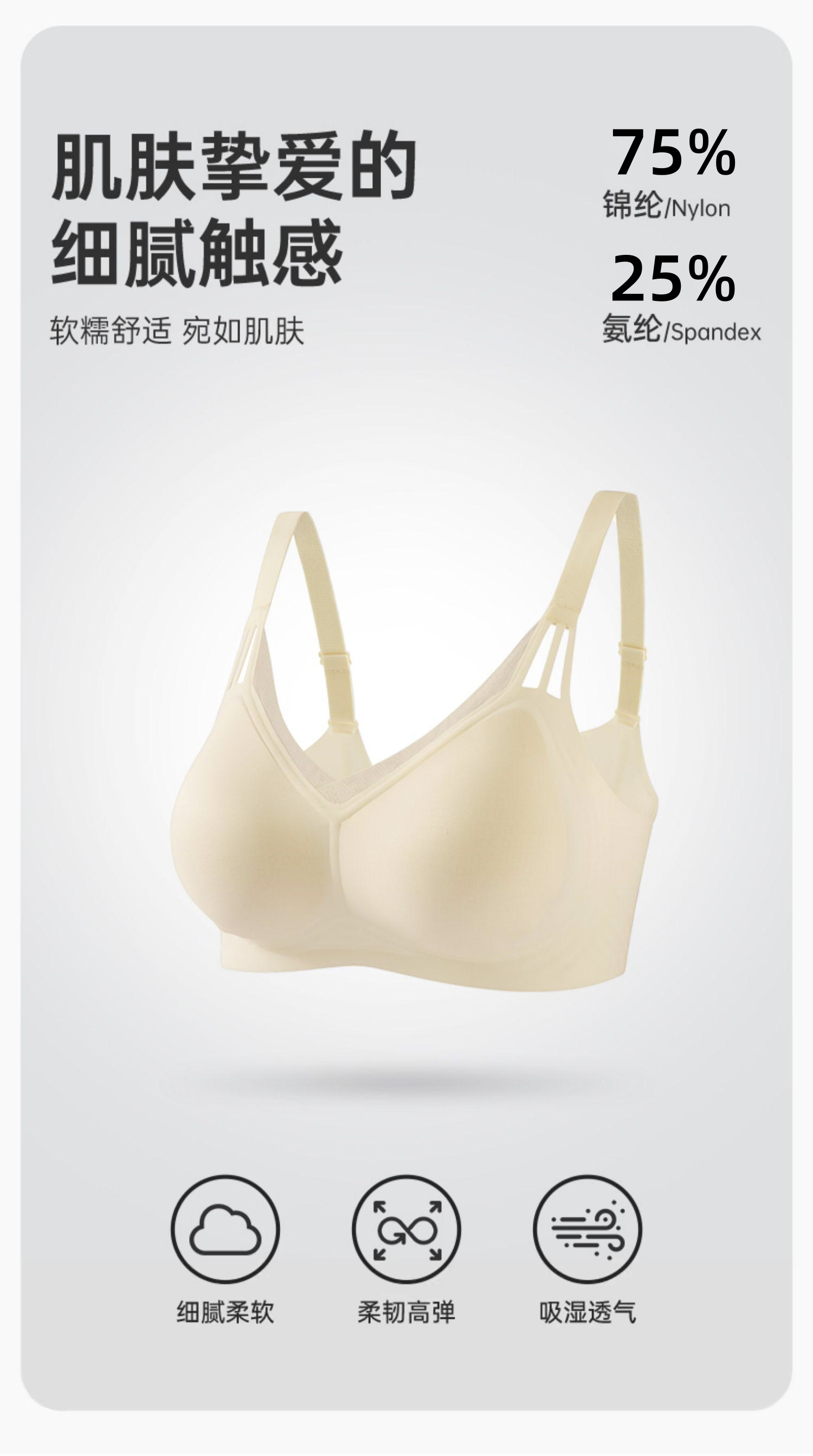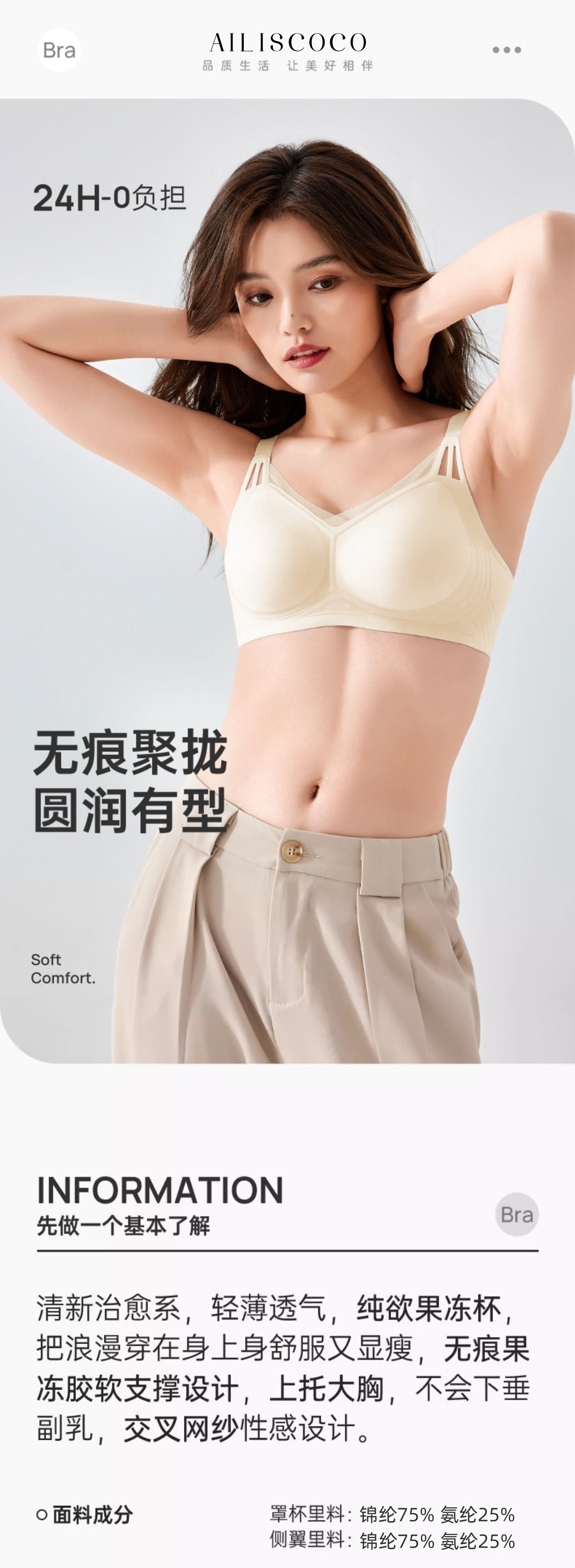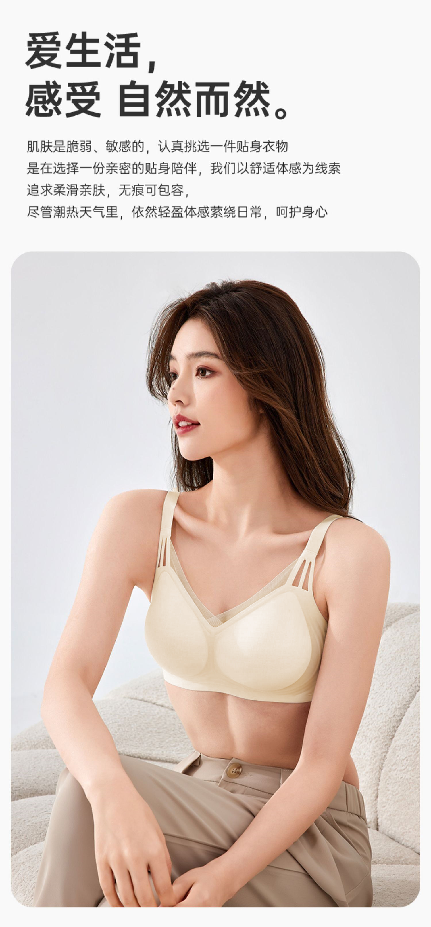 第二件0元!自然向上无痕聚拢 【小凉风果冻网纱内衣】果冻条软支撑 加宽侧翼 肉肉隐形穿衣更显瘦