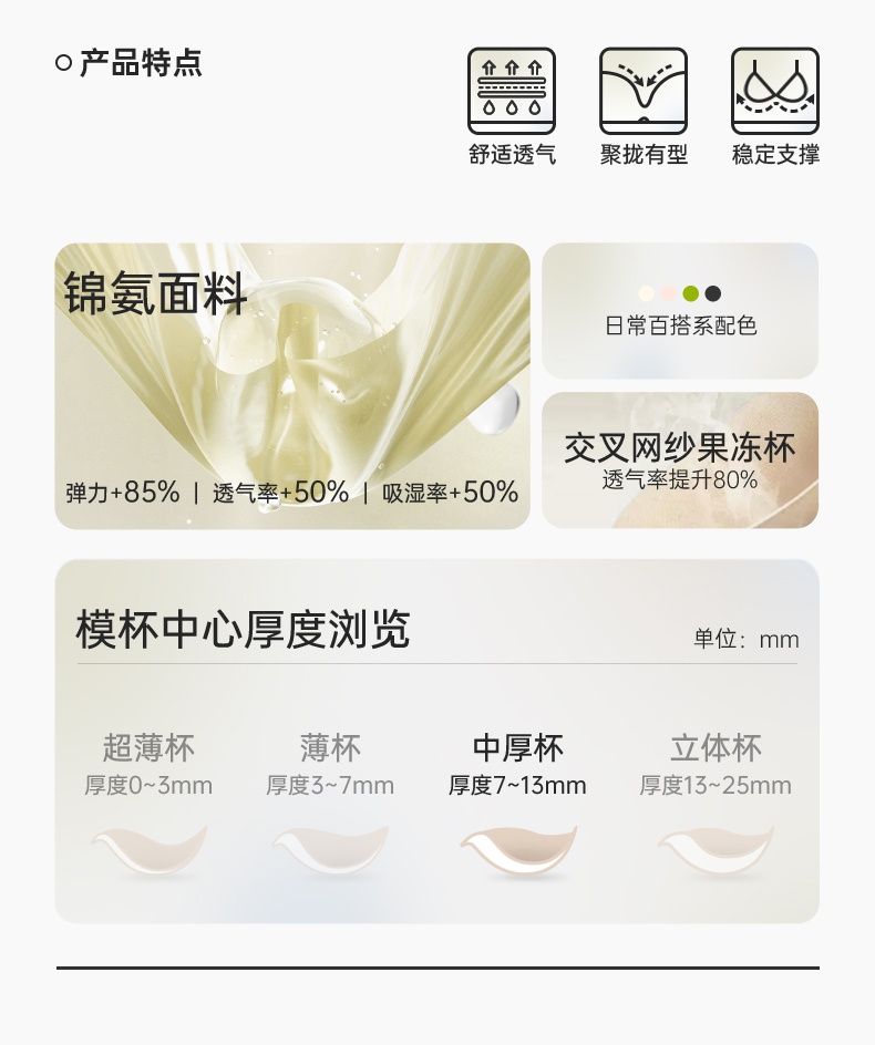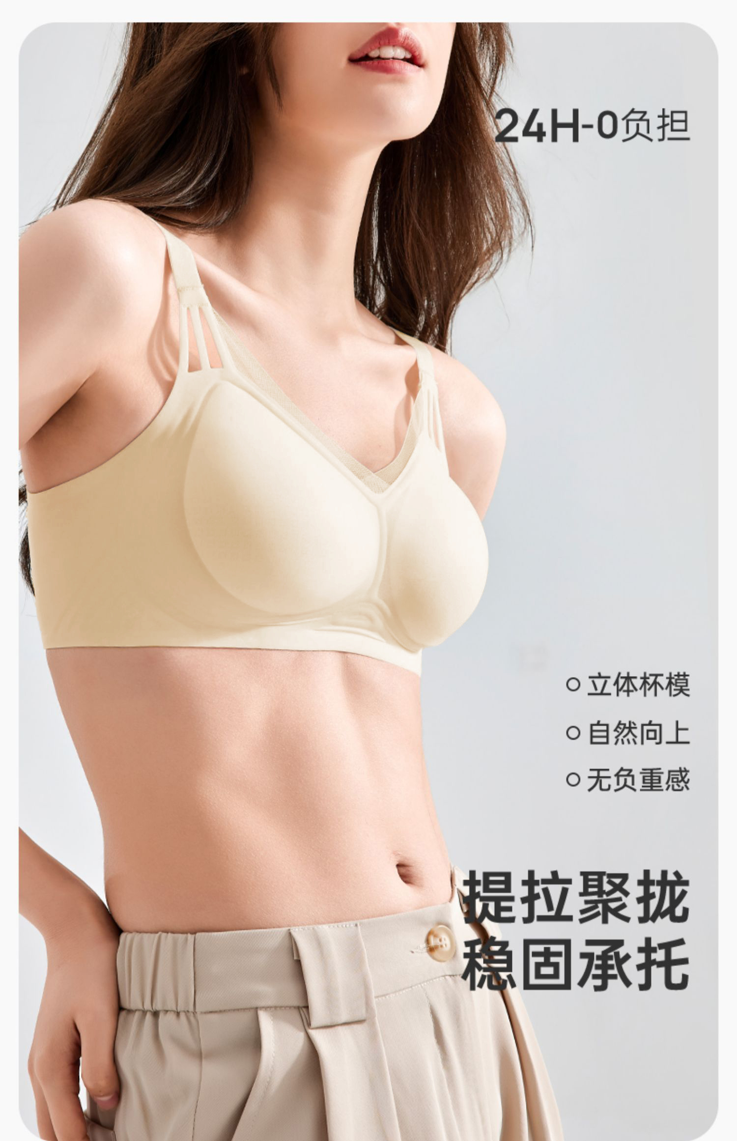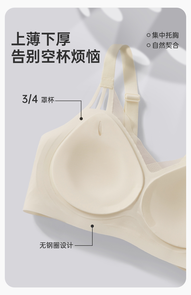 第二件0元!自然向上无痕聚拢 【小凉风果冻网纱内衣】果冻条软支撑 加宽侧翼 肉肉隐形穿衣更显瘦