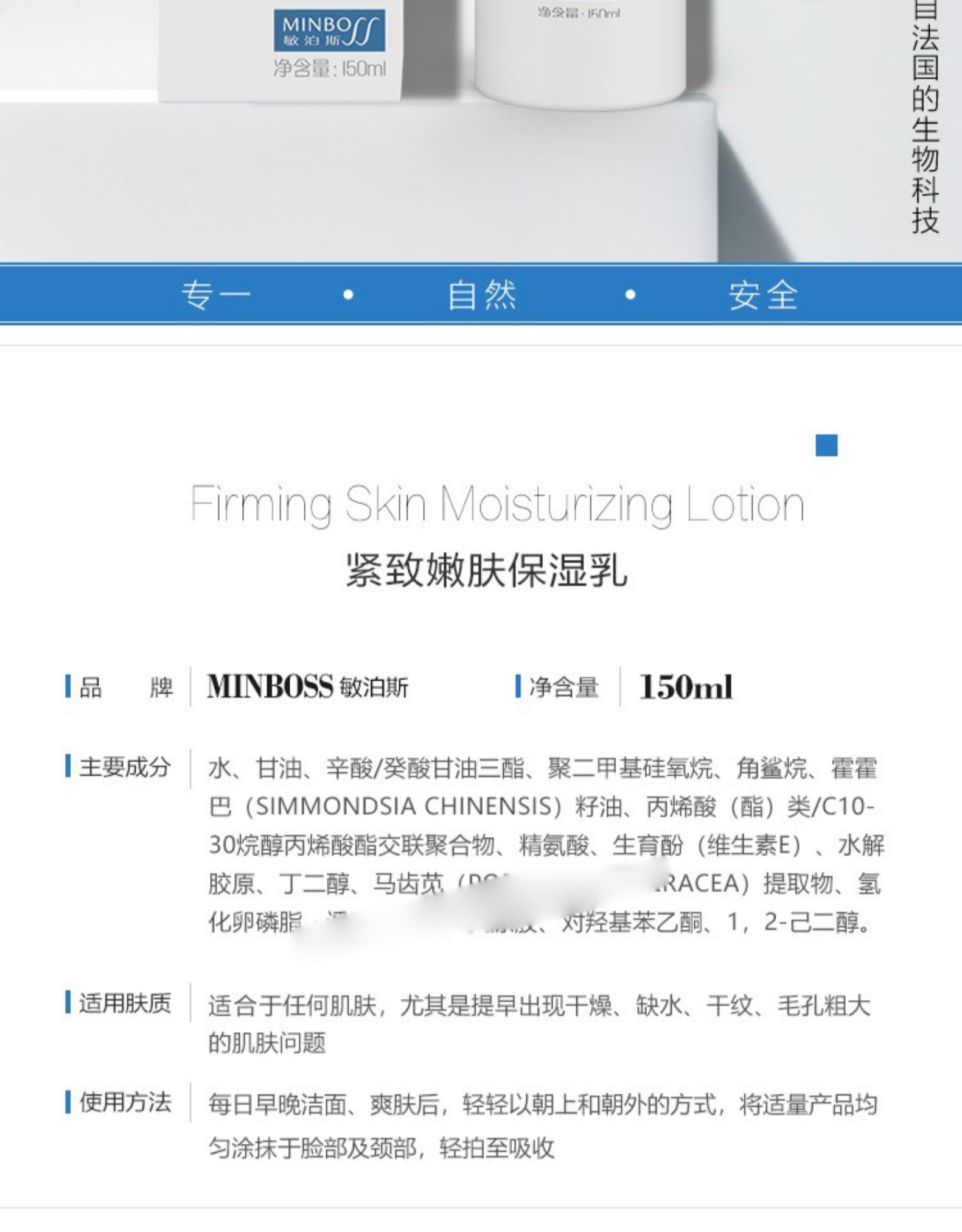 敏泊斯 | 紧致嫩肤保湿乳150ml | 紧致肌肤 润泽营养角质层 修护皮肤屏障