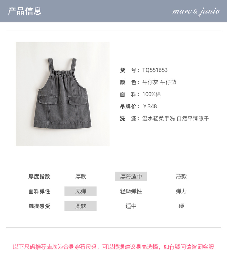 马克珍妮女童纯棉牛仔A版背带裙2025年秋装新款551653