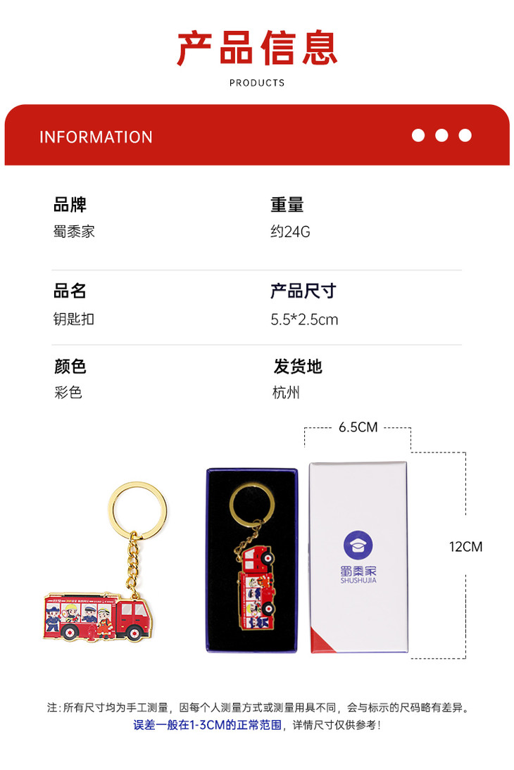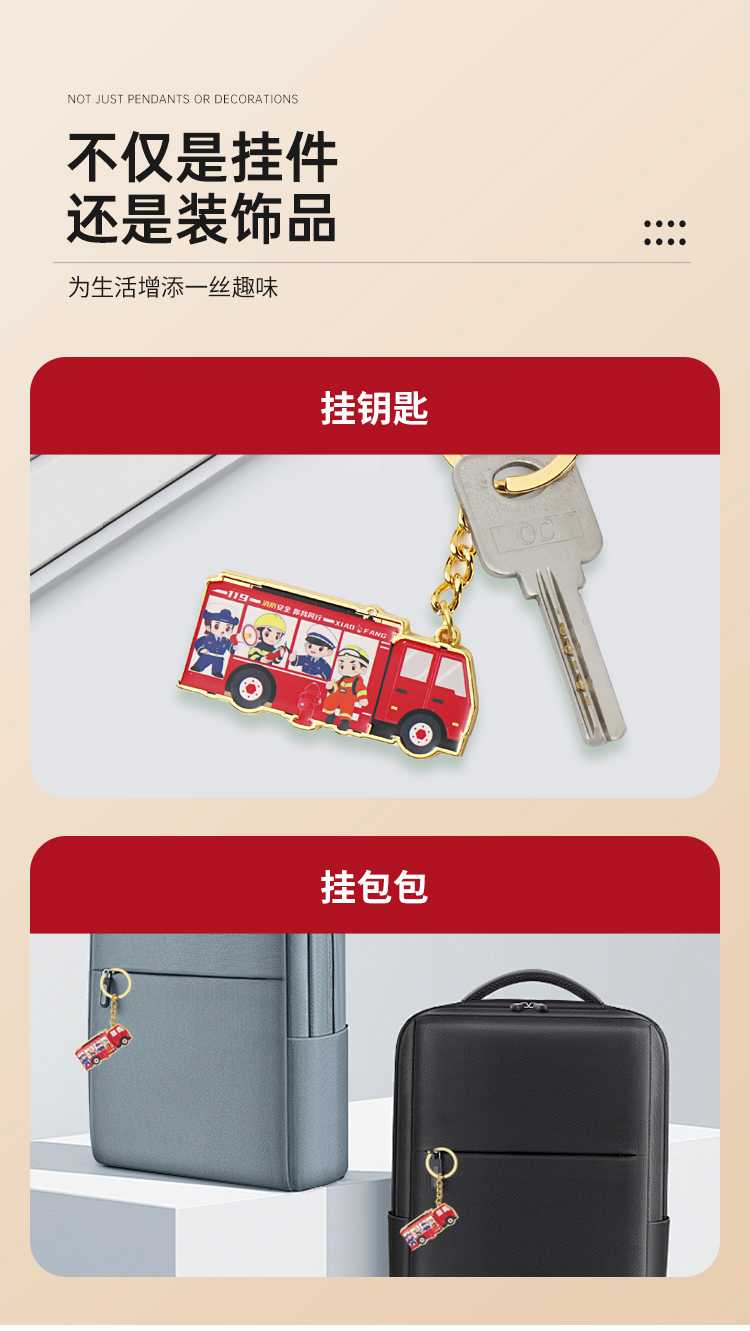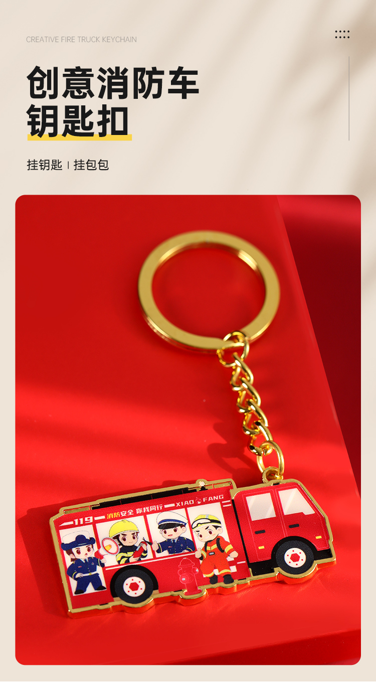 【消防车合金钥匙扣】创意卡通挂饰礼盒装包包车载挂件