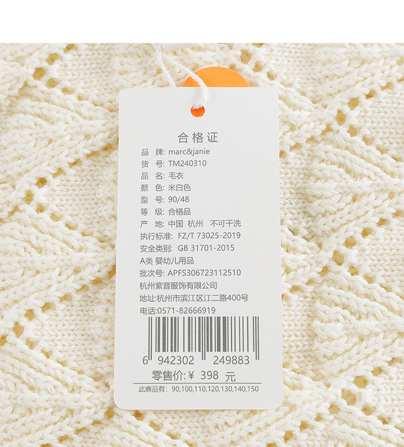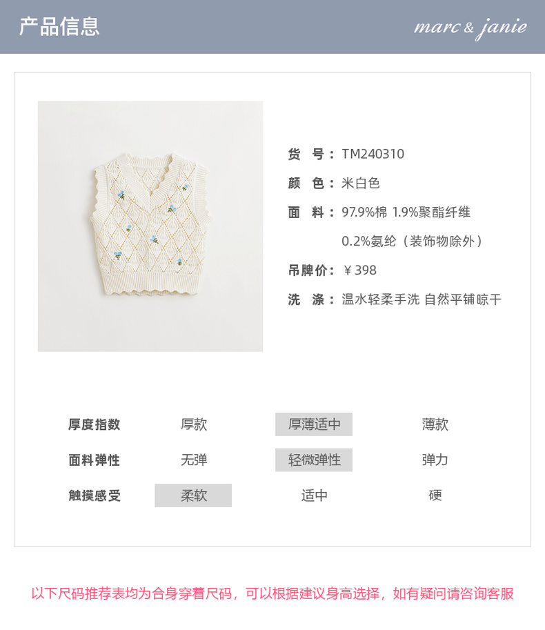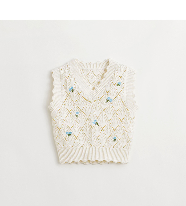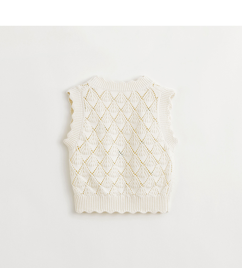 马克珍妮女童田园提花针织毛衣背心儿童马甲2024年春装新款240310