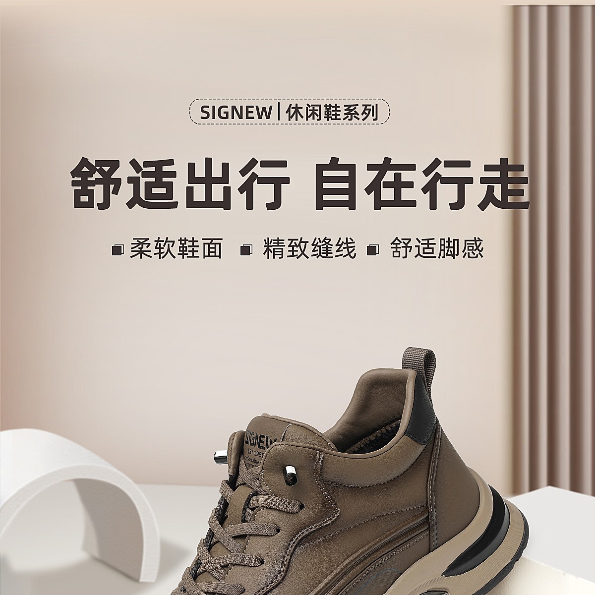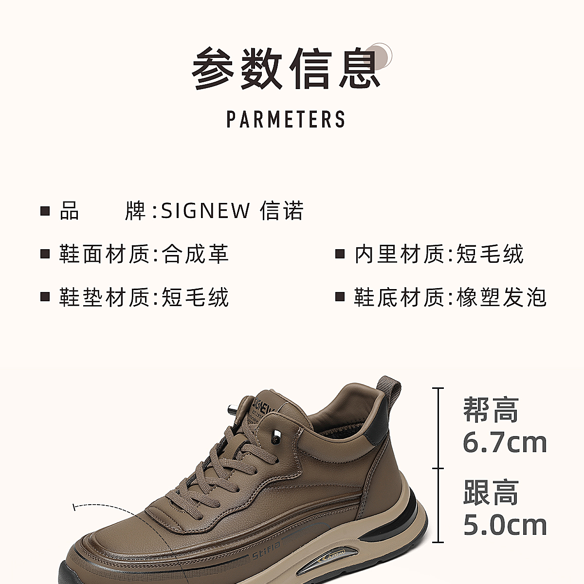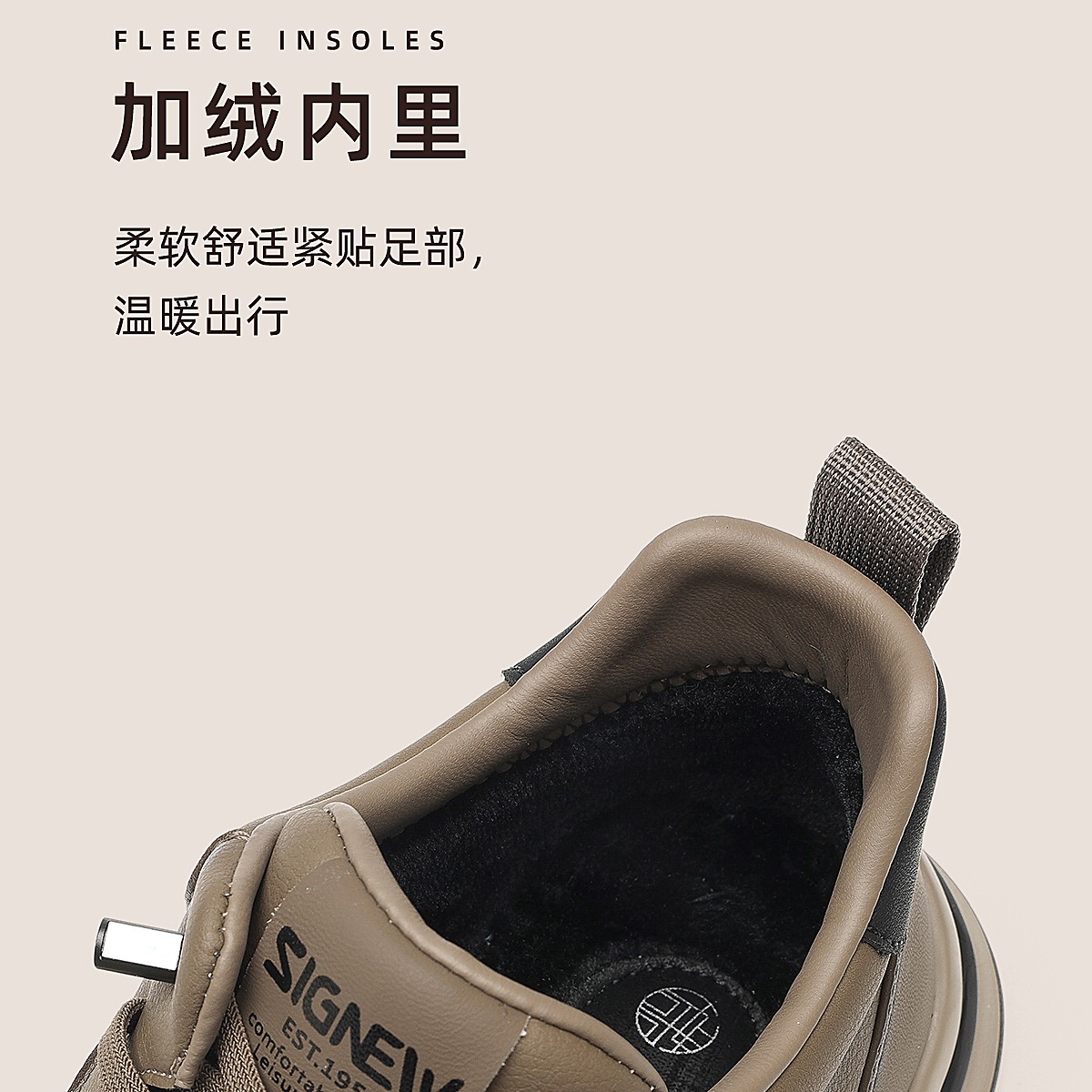 信诺男鞋软底舒适运动鞋加绒保暖棉鞋中老年休闲皮鞋2025冬季新款N5M063-238D