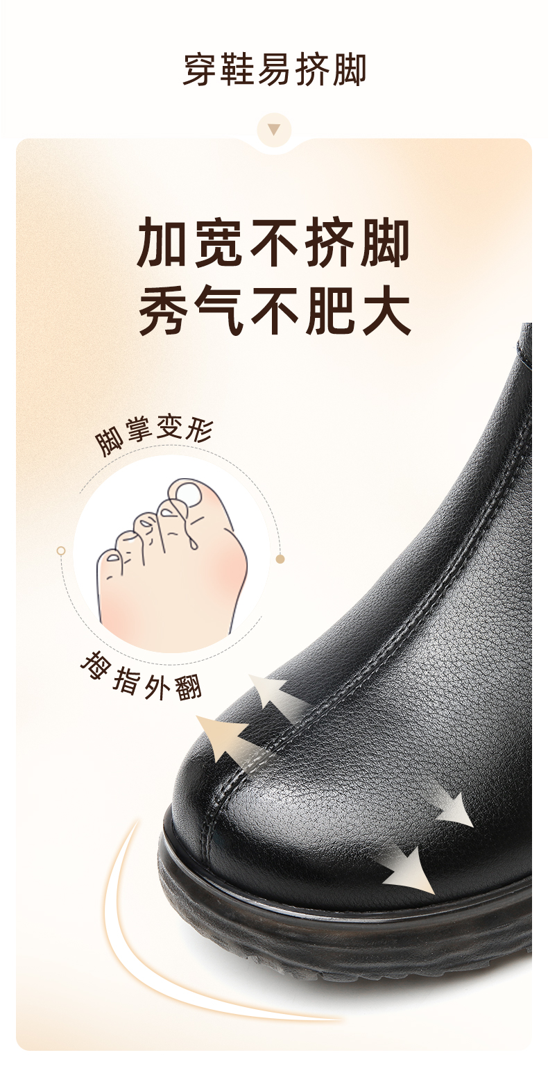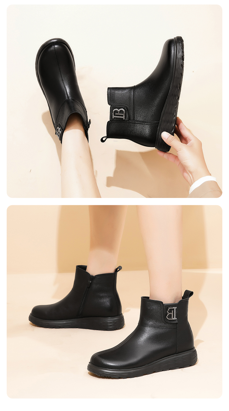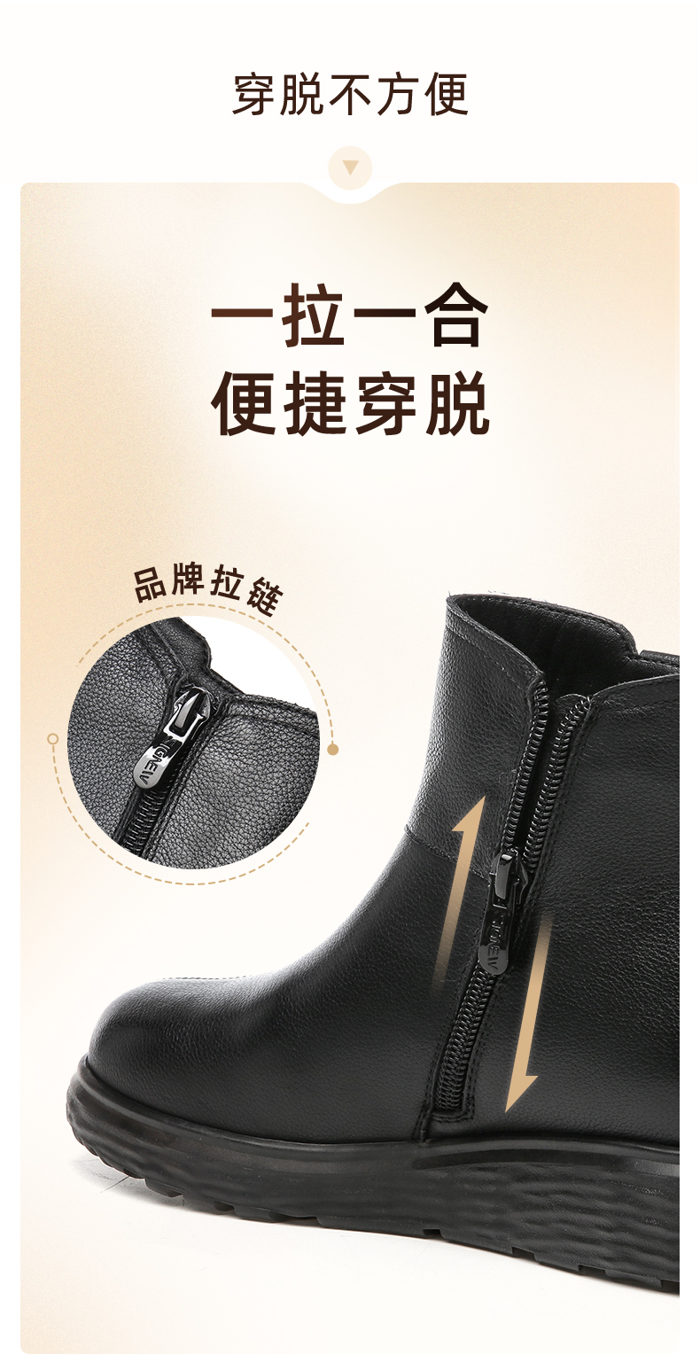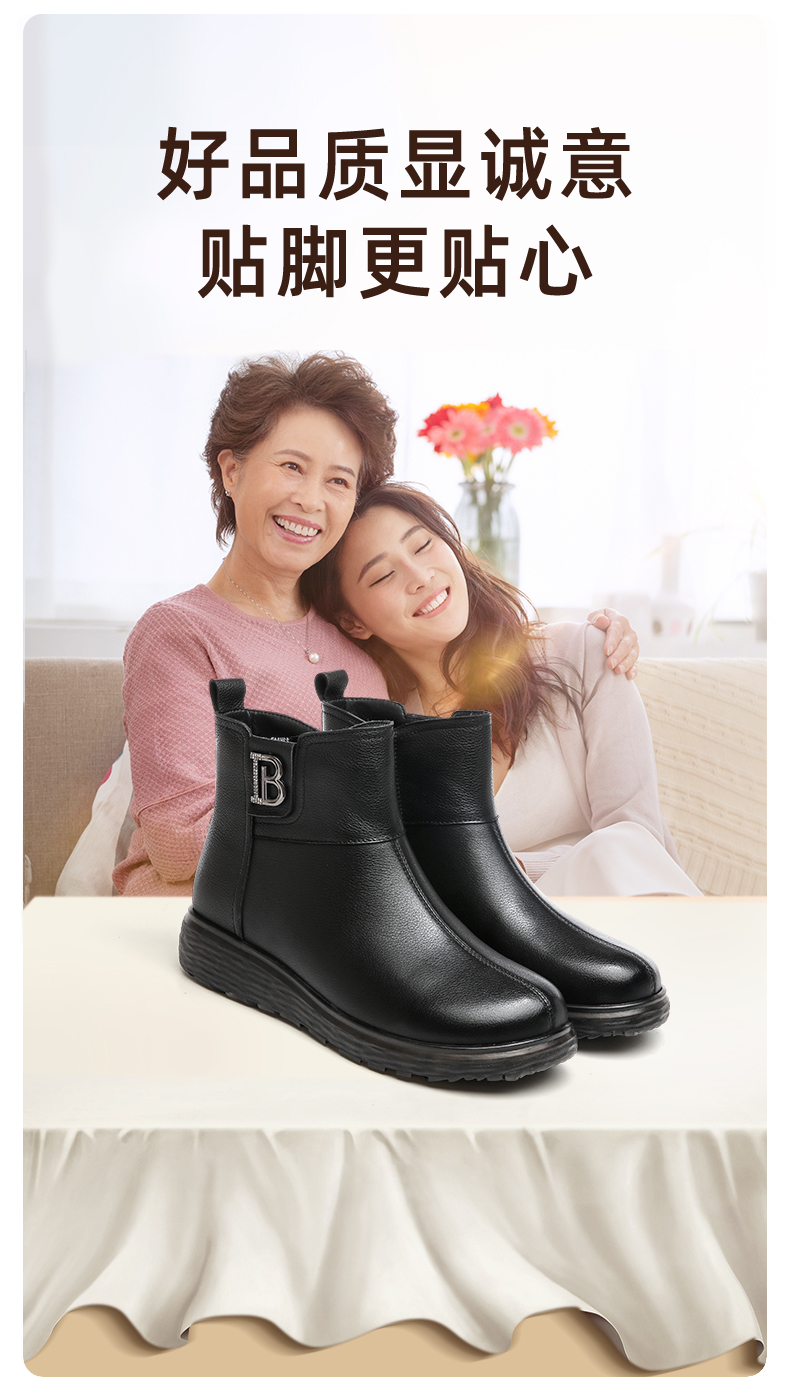 信诺真皮舒适女靴2022冬季新款妈妈靴子薄棉平底圆头短靴加绒皮鞋2M227-15
