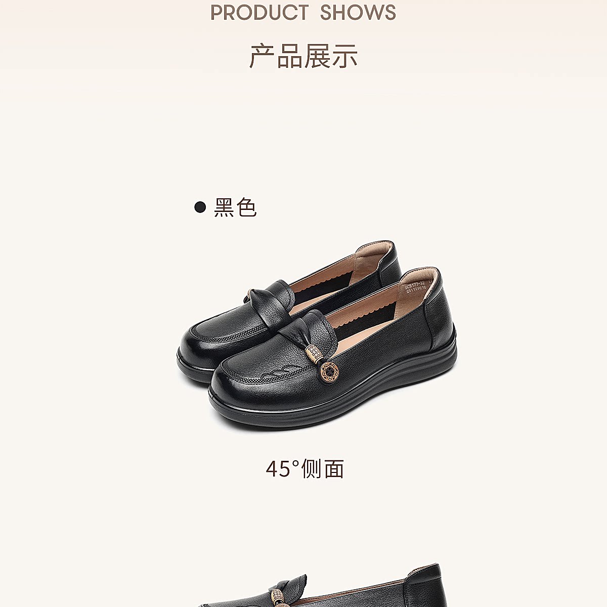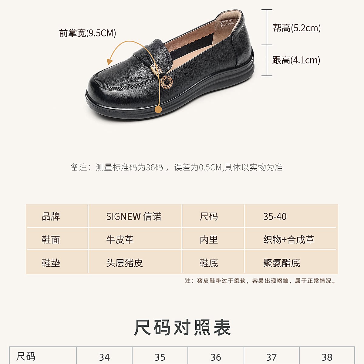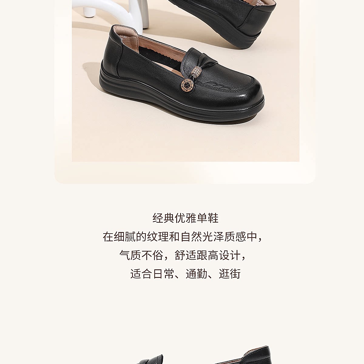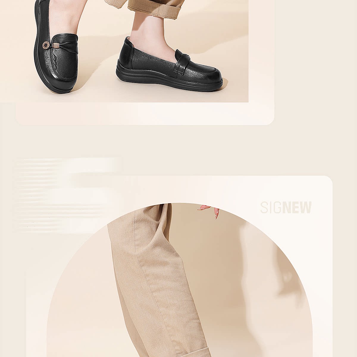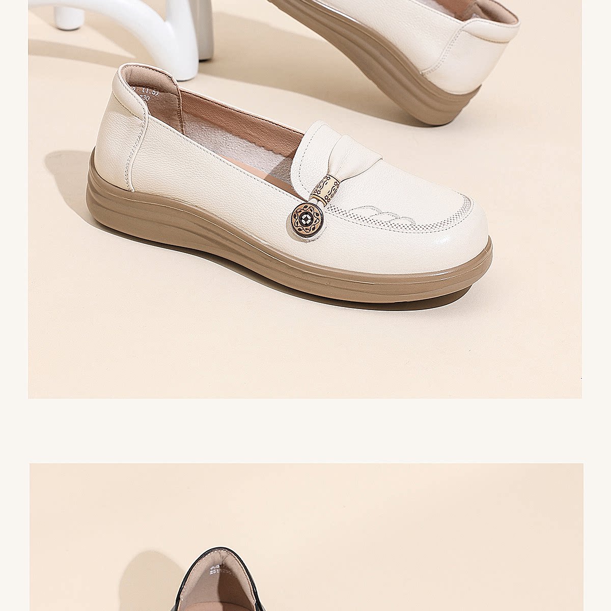 信诺真皮乐福鞋女平底一脚蹬软底不累脚妈妈鞋白色单鞋6C8166-32