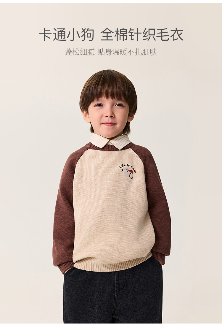 马克珍妮男童卡通小狗全棉针织毛衣2025年秋冬新款551853