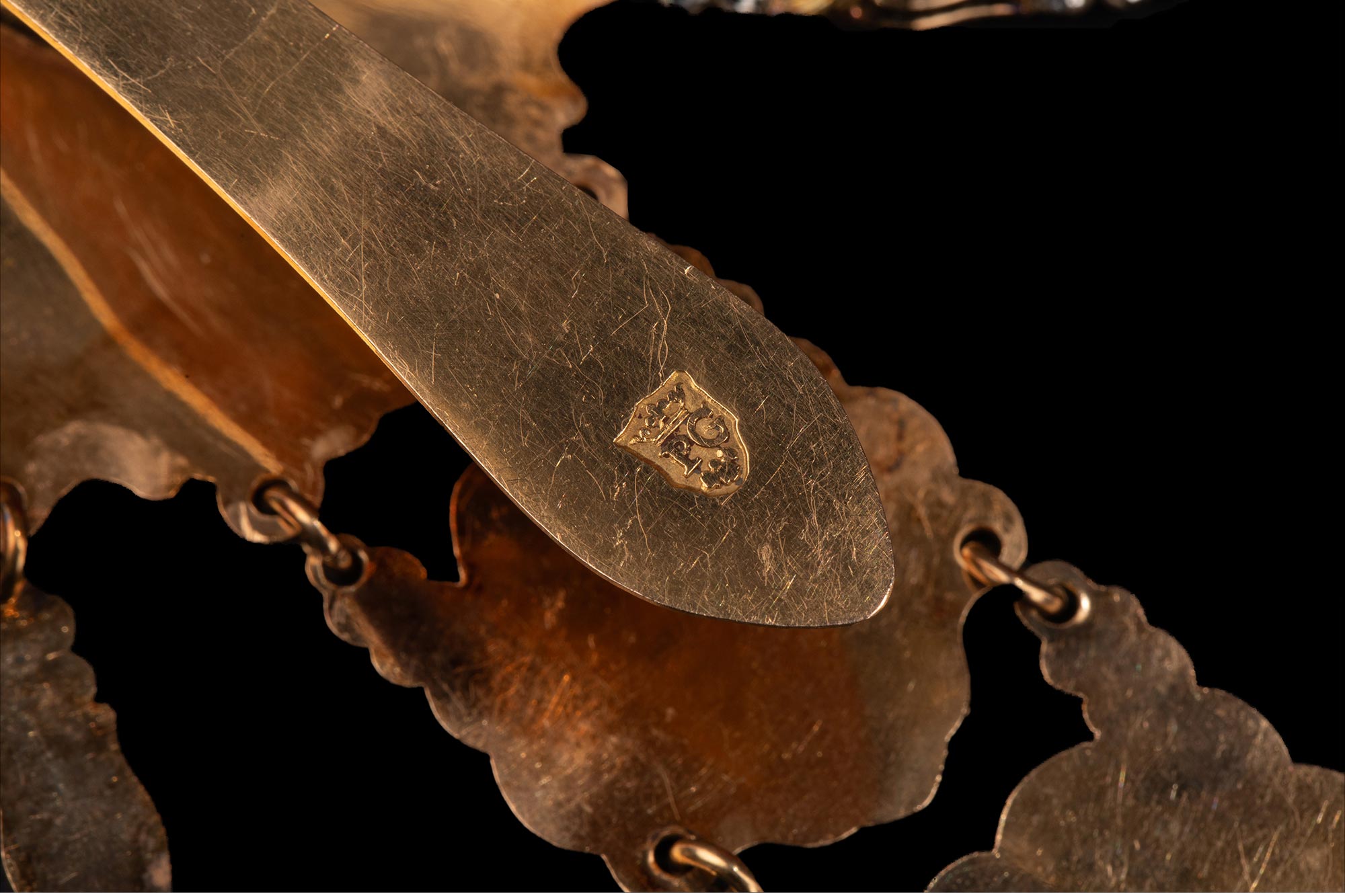 独角鹿西洋古董 瑞士Ph. Terrot & Fazy工坊签名出品18K黄金精雕镶嵌钻石及古典孩童主题珐琅彩绘腰链式怀表