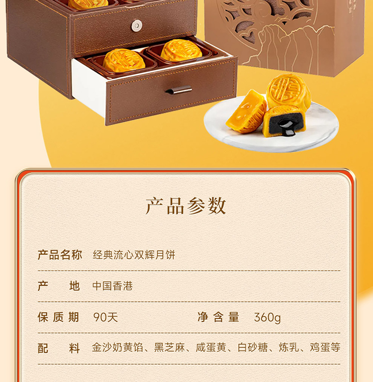 香港进口广港式皇玥 经典流心双辉月饼360g