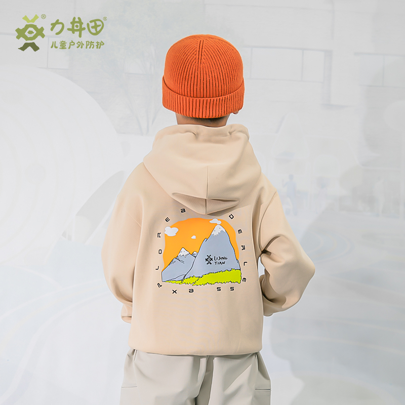 力丼田儿童户外高山系列 休闲连帽卫衣 杏色百搭 L2411S015CAYW
