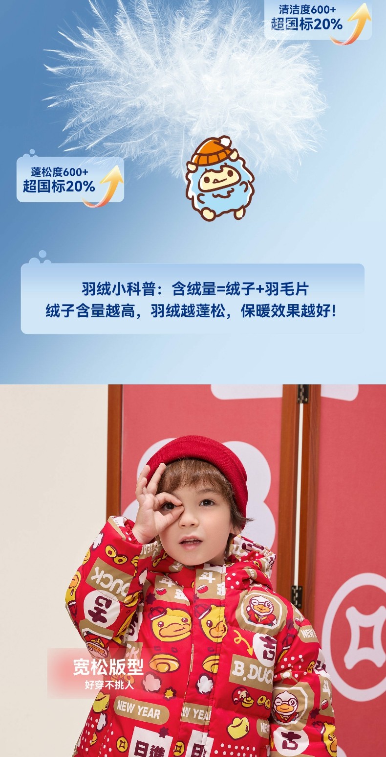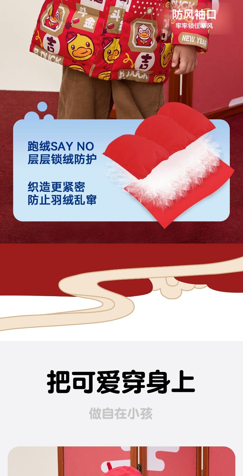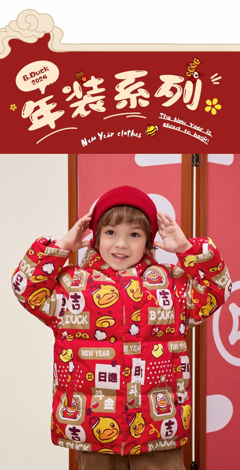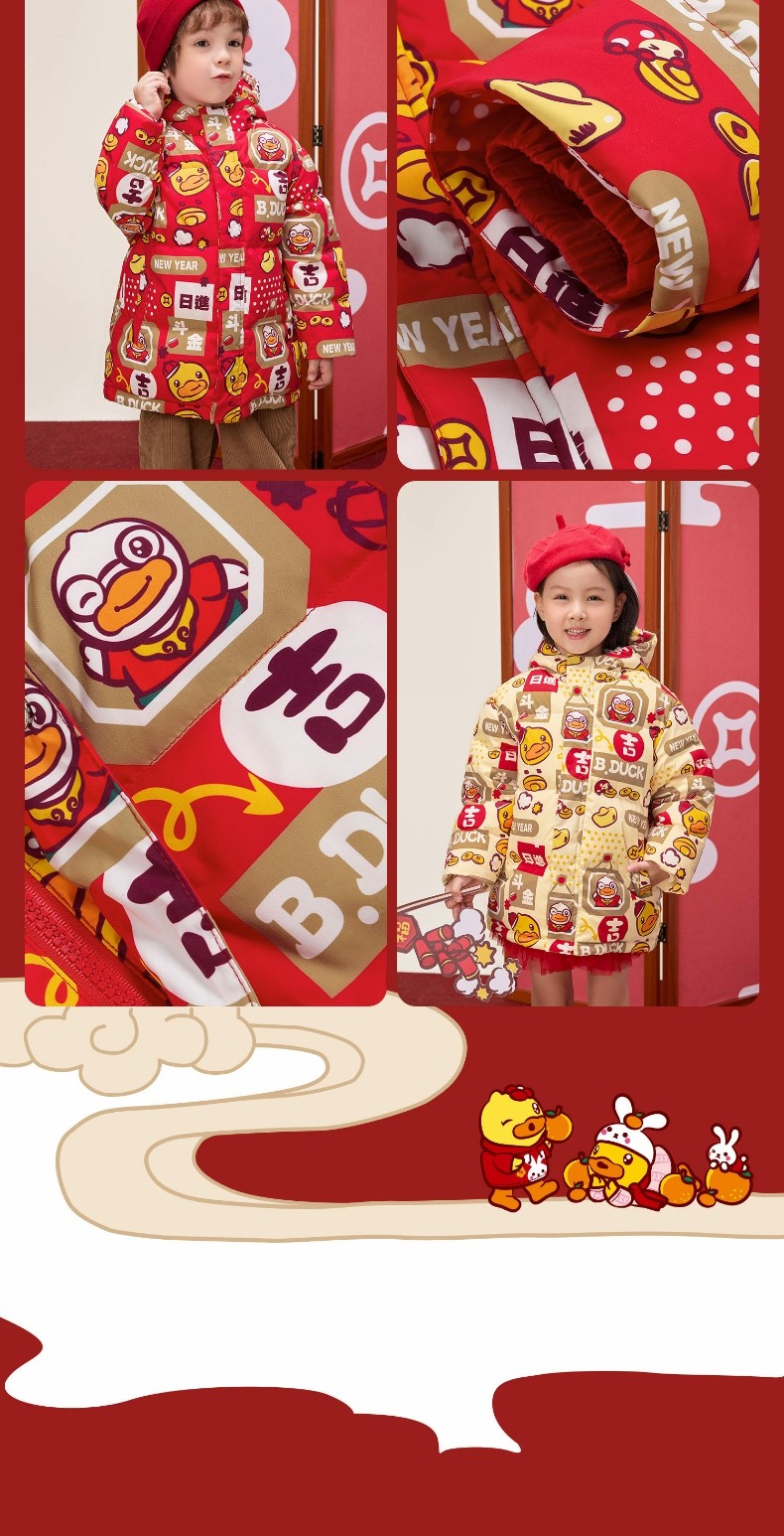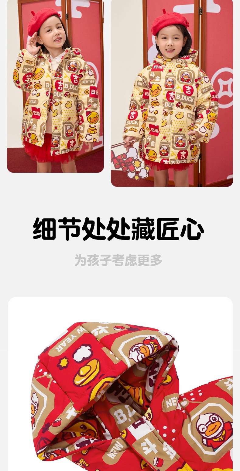 bduck小黄鸭童装冬季男童羽绒服拜年服105-150 BF5516066
