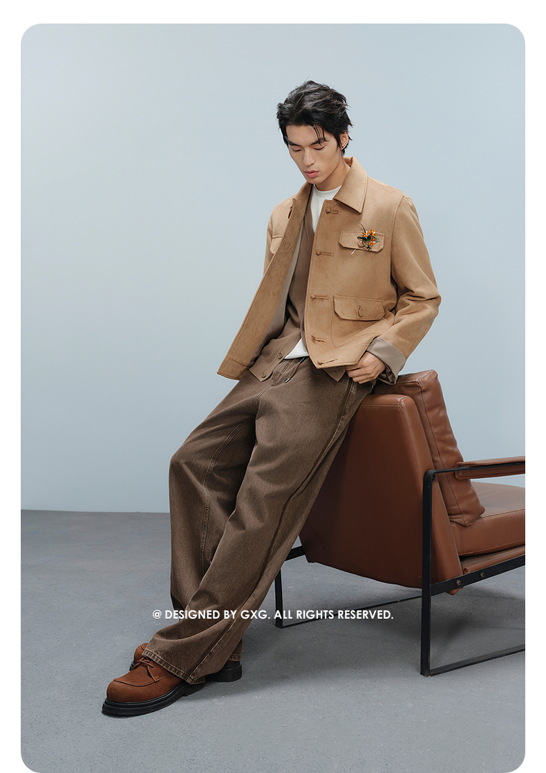 GXG男装 仿麂皮工装夹克男通勤外套24年冬热卖G24X214066
