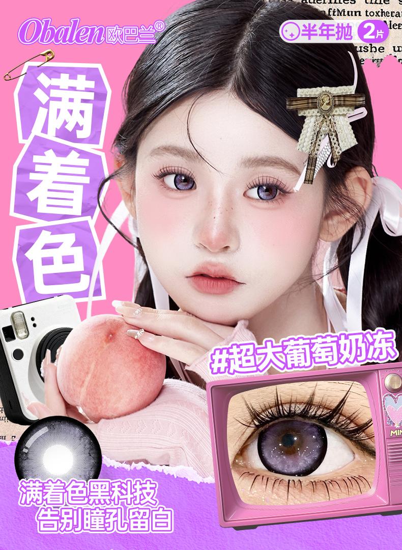 新品【超大满着色】方盒系列Obalen欧巴兰扩瞳显色【超大葡萄奶冻】14.5大直径高级微醺梦幻漫画感半年抛美瞳非离子隐形眼镜2片装