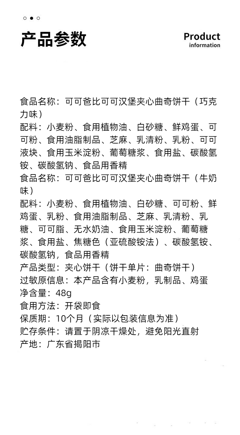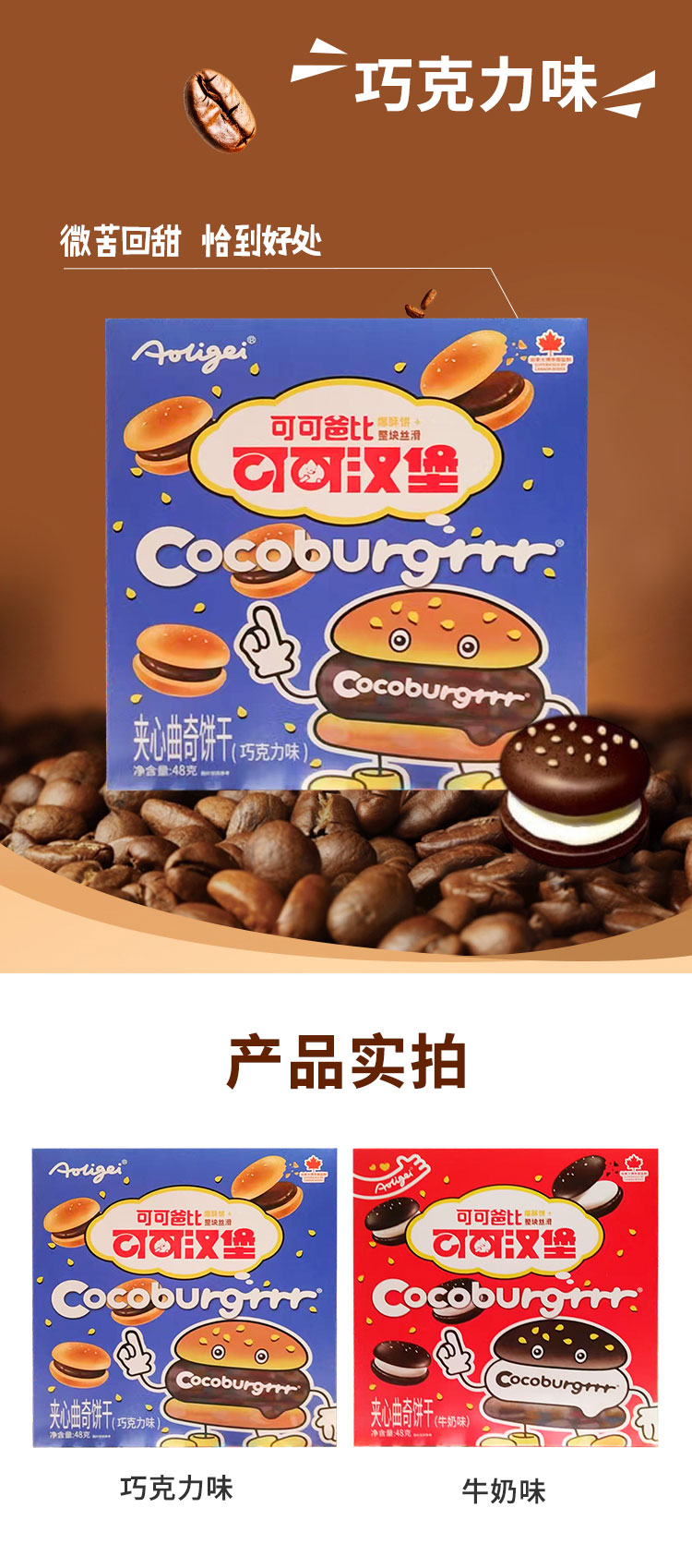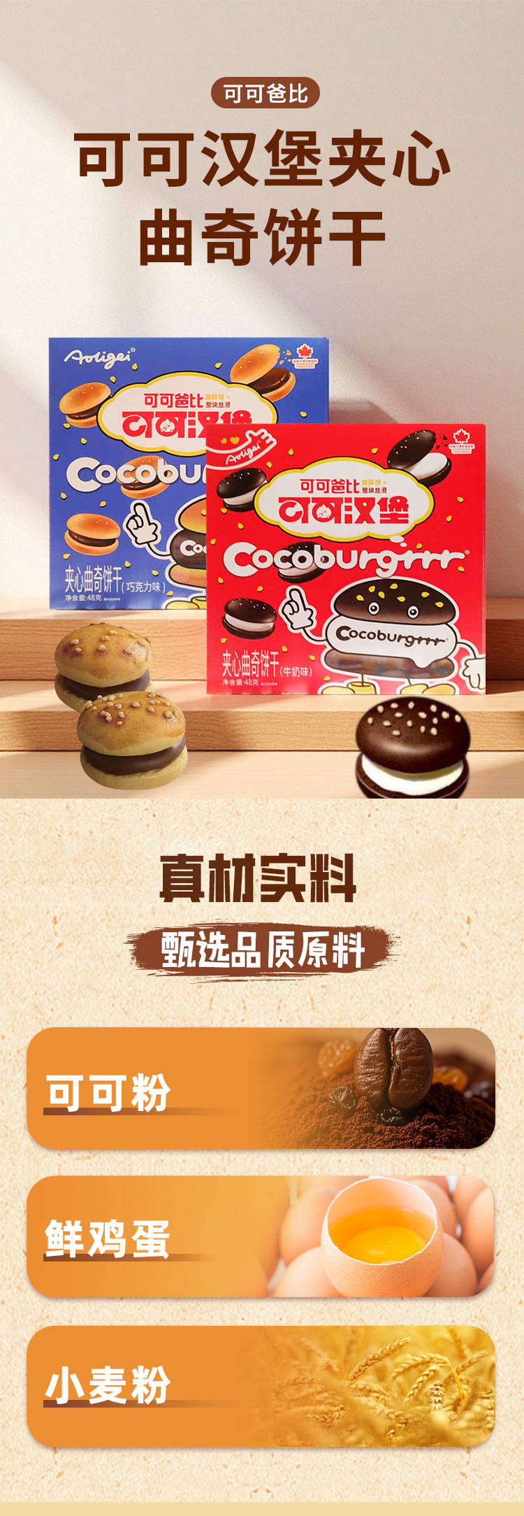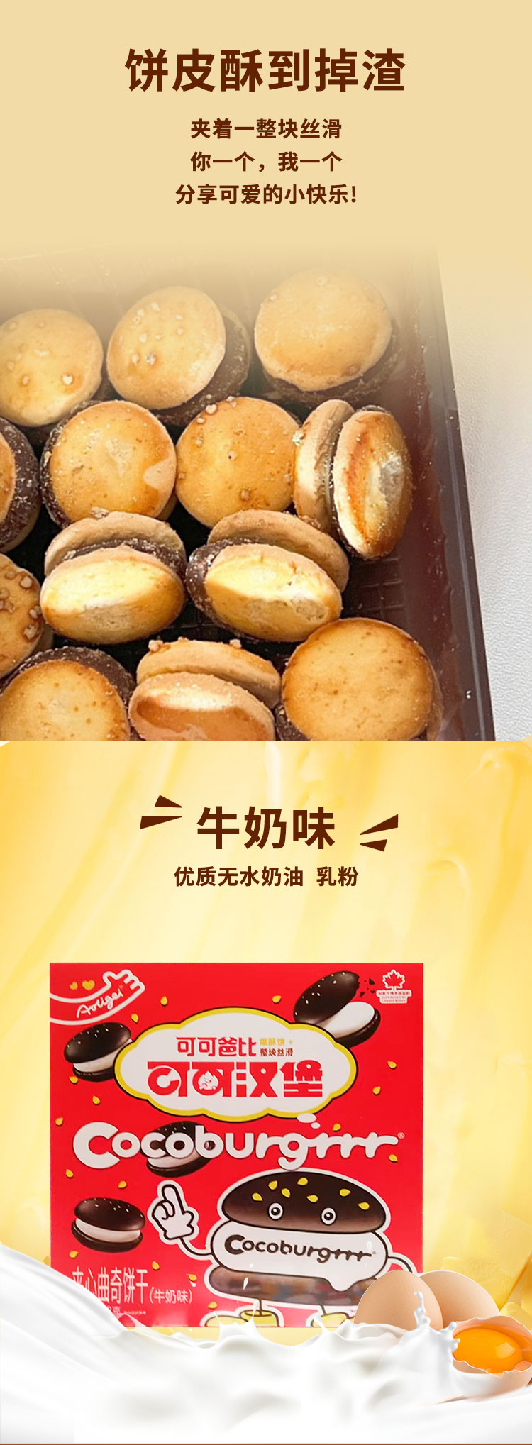 可可汉堡巧克力|牛奶味夹心曲奇饼干48g