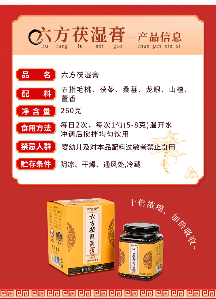 【六方伏湿膏】五指毛桃 茯苓 桑葚 龙眼 山楂 藿香 秉承古法传统工艺制作 买二送一
