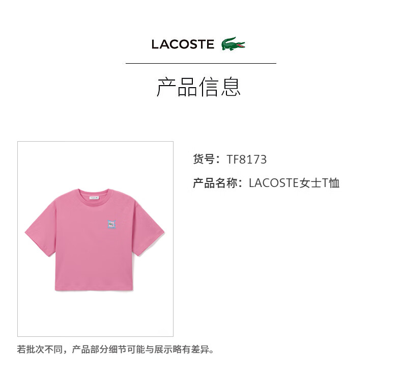 Lacoste法国鳄鱼夏日系列女装新款卡通字母T恤TF8173-98