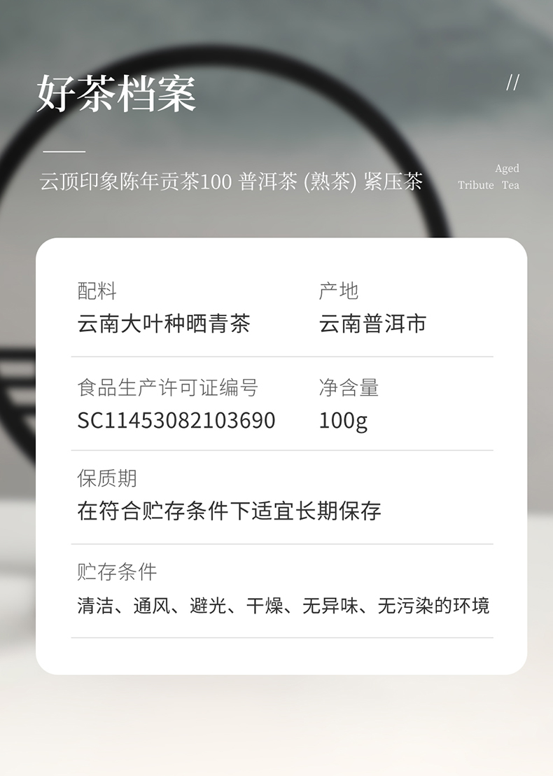 云顶陈年贡茶100·皇贡 普洱(熟茶)100g