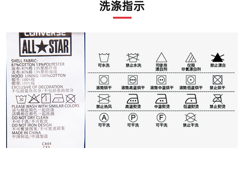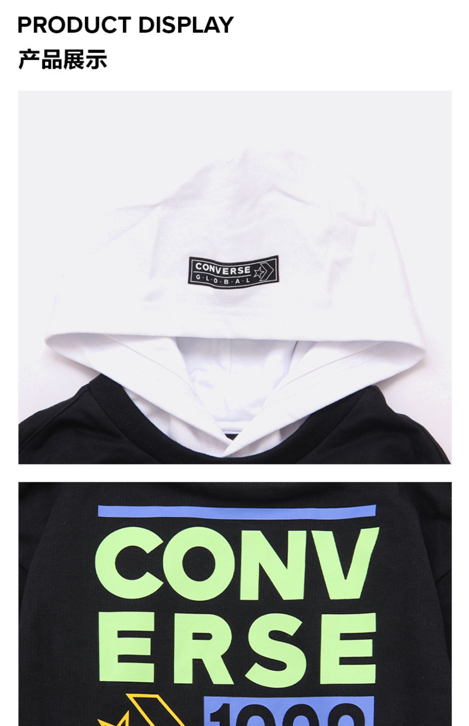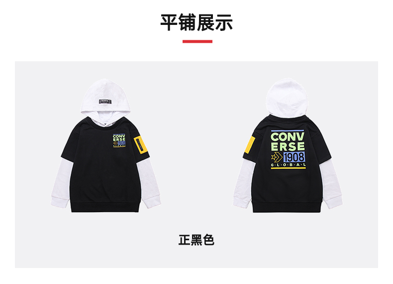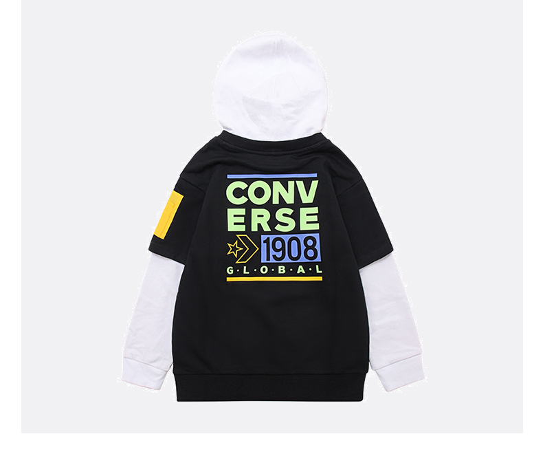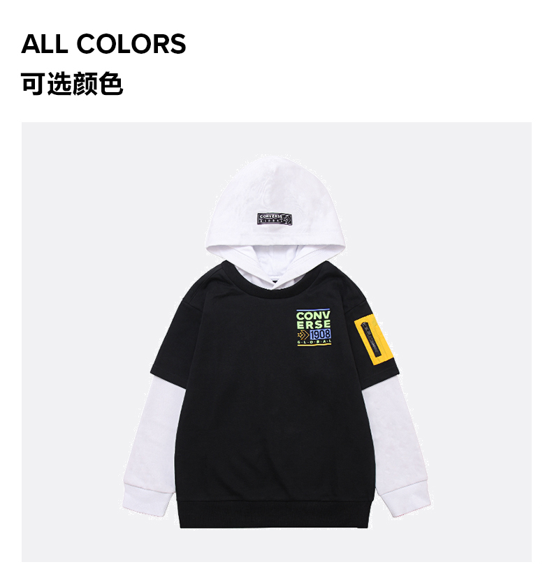 Converse/匡威童装春男女儿童假两件针织连帽套头卫衣CV2212114