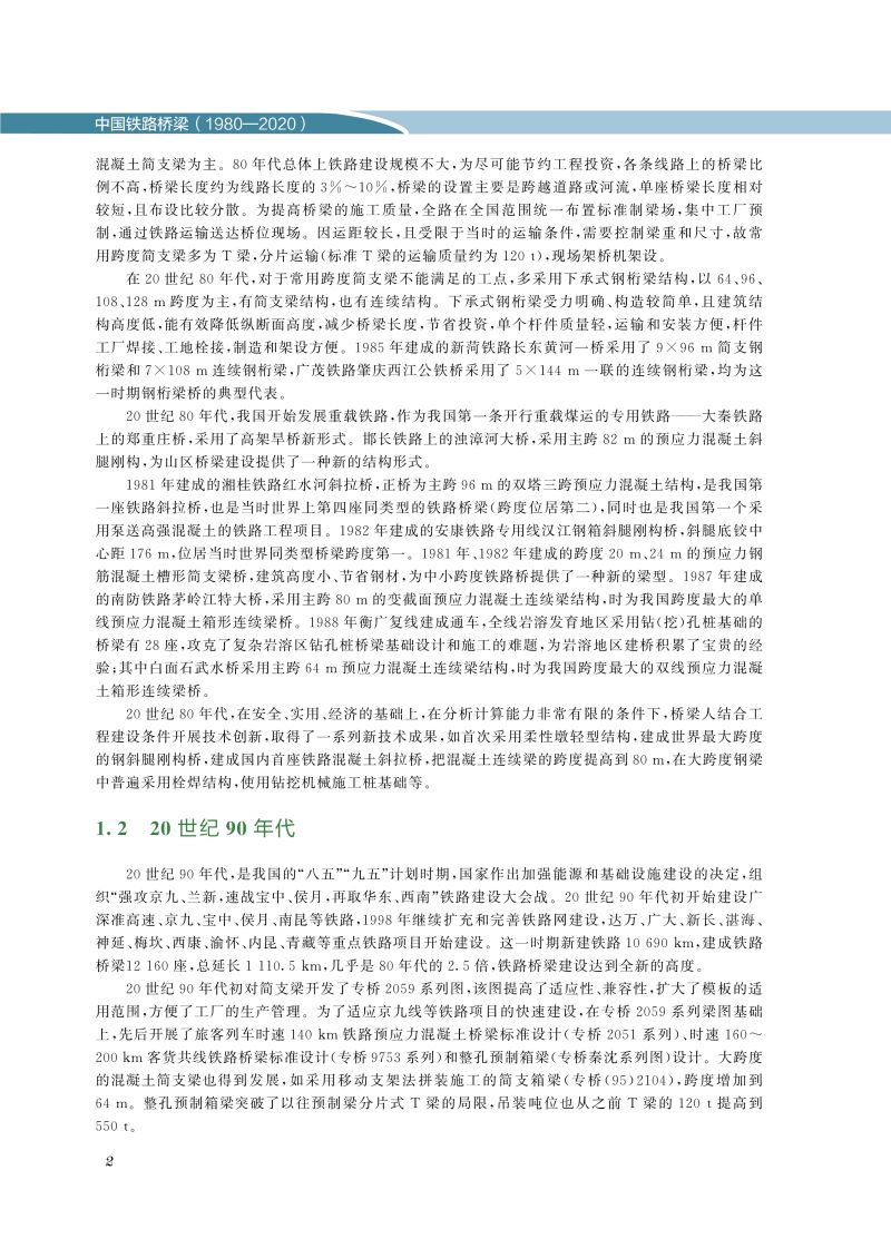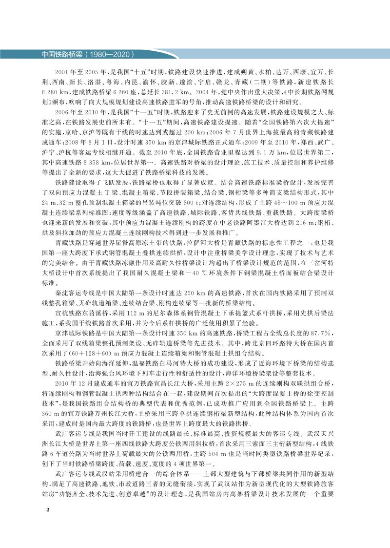 改革开放以来,中国铁路建设进入了辉煌的发展时期,举世瞩目的京九铁路、南昆铁路、青藏铁路、京沪高速铁路等大规模的铁路建设,特别是本世纪以来高速铁路的发展,凝结了铁路人的辛勤劳动和智慧成果。本书收录了不同地理环境下的各种类型桥梁共计204座,充分体现了40年来铁路桥梁技术的发展和创新,反映了不同历史时期我国铁路桥梁建设领域的最高技术水平和自主创新能力。