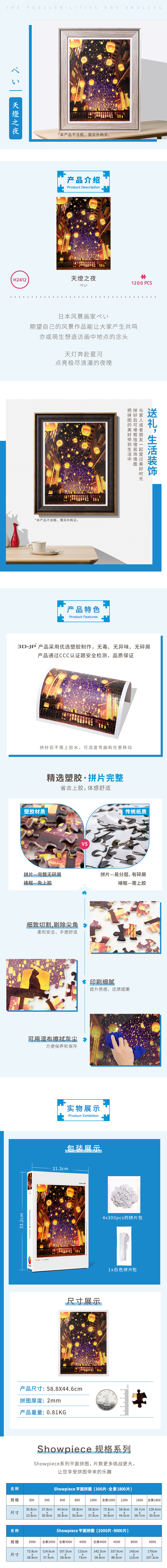 1200片 平面拼图 塑料拼图 H2412 ペい - 天灯之夜