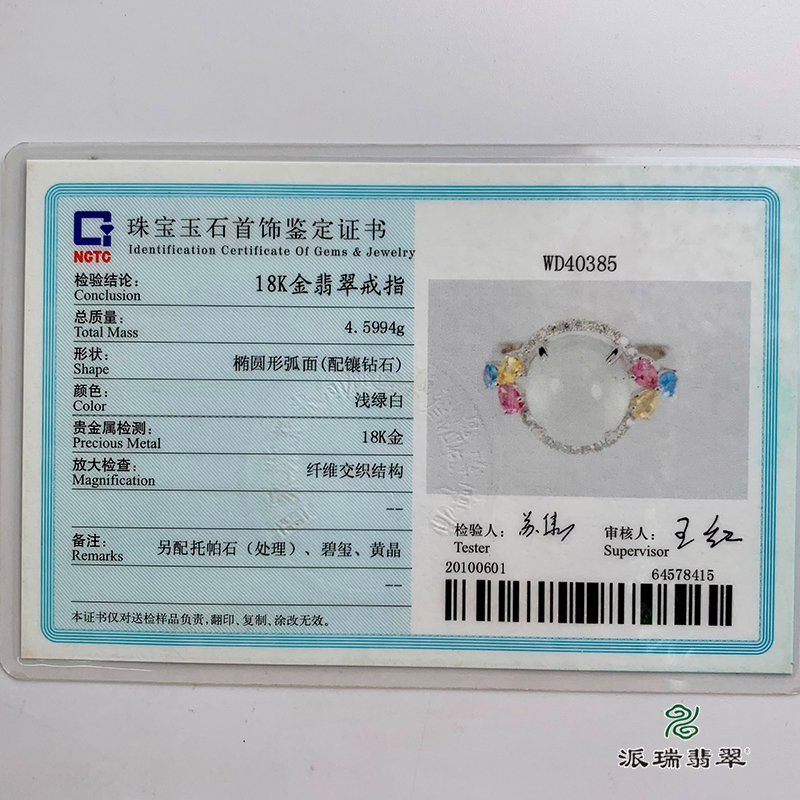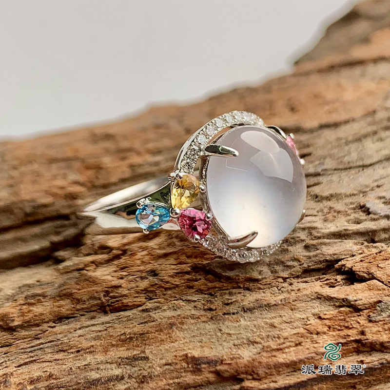 派瑞翡翠 18k金翡翠戒指 冰种 无色
