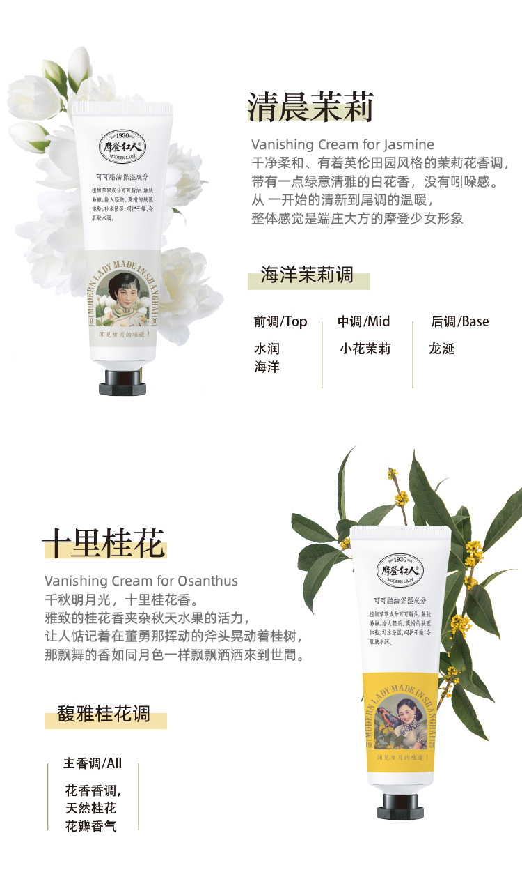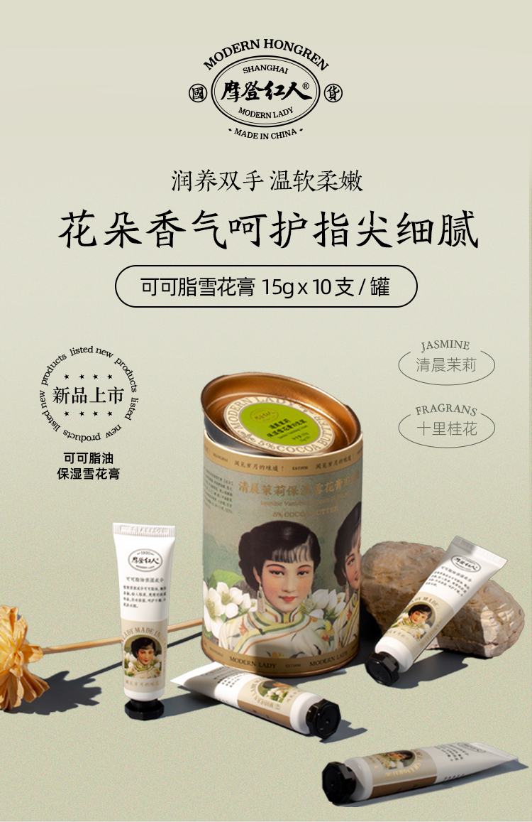摩登红人官方正品保湿补水护手霜面霜身体乳夏季清爽10支装雪花膏礼盒送礼自用便携小包装桂花茉莉花香