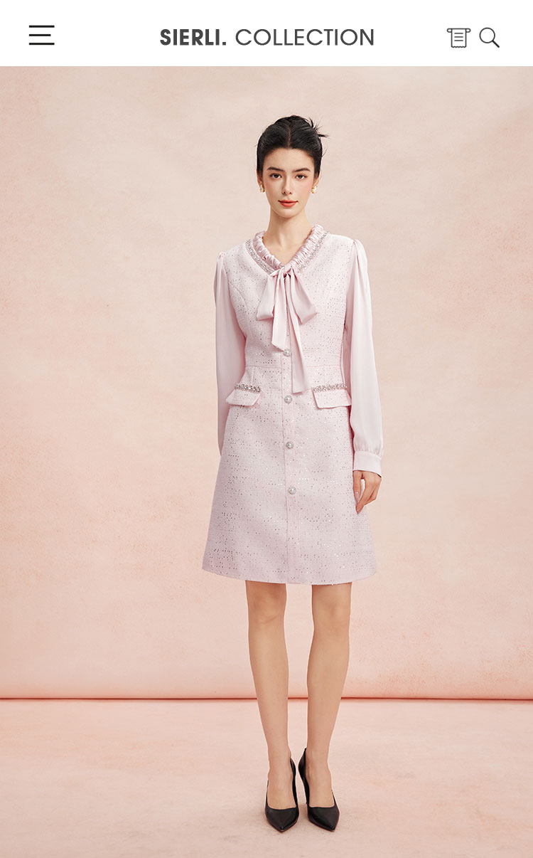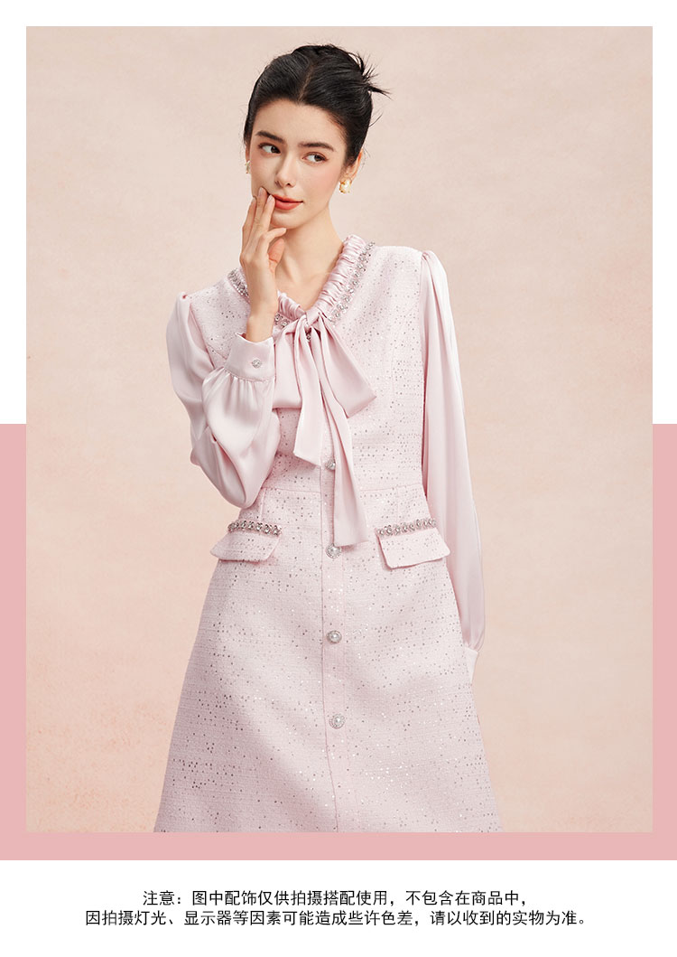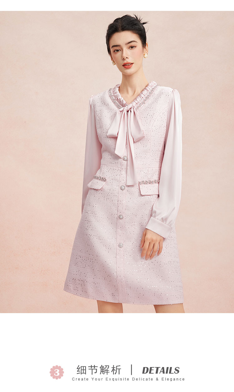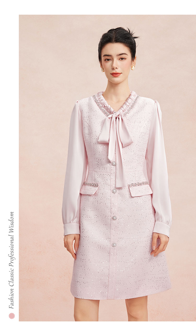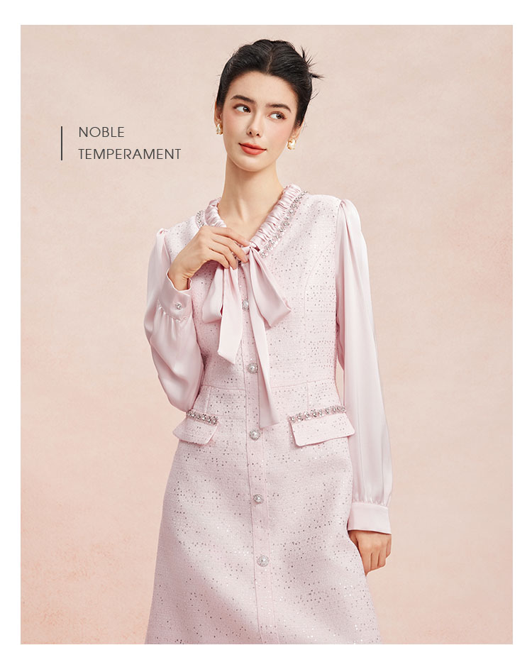 RE812斯尔丽26新款小香风名媛气质高级感修身显瘦优雅白领飘带款连衣裙