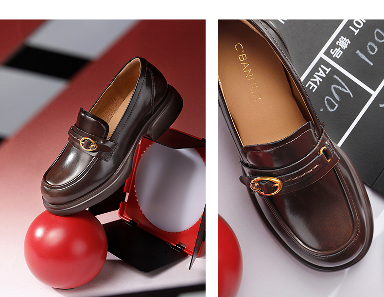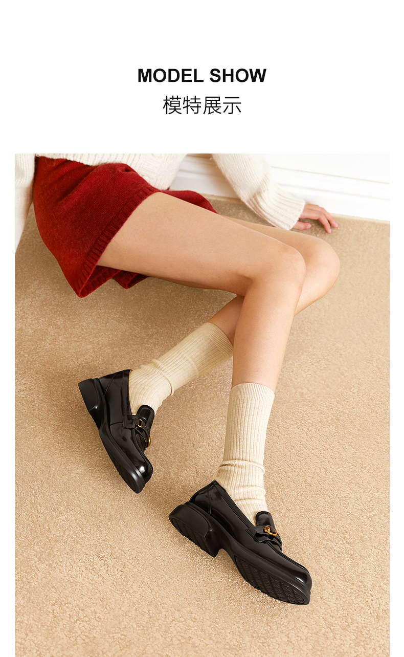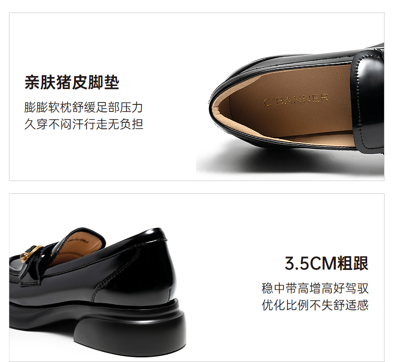 千百度蝴蝶钻饰低跟玛丽珍女鞋通勤真皮通勤浅口单鞋A25185101