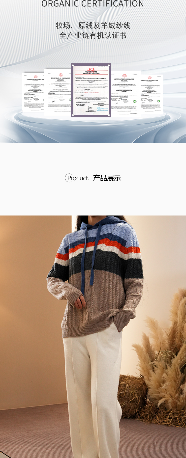 东黎羊绒是赤峰东荣集团自主品牌,自有牧场/羊绒制品全产业链优势,实现了羊绒从“牧场”到“商场”的华丽转变。