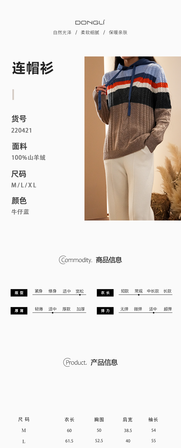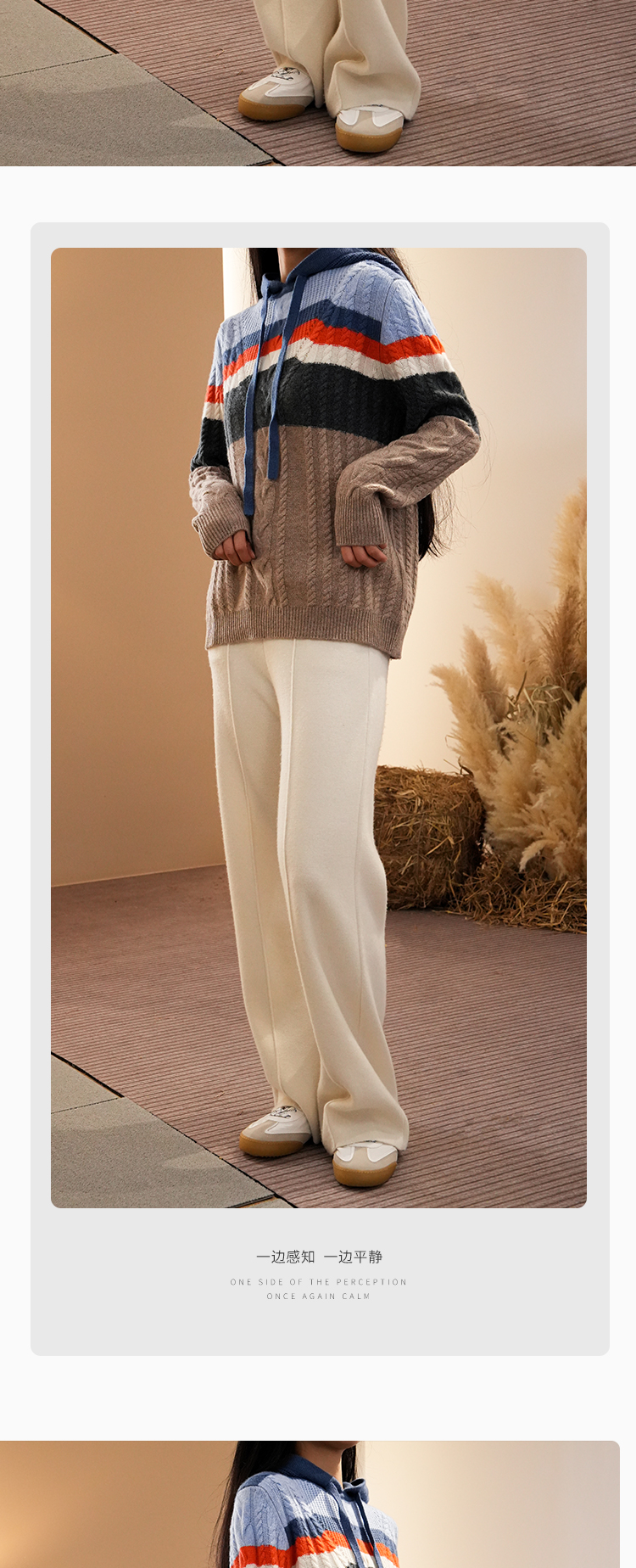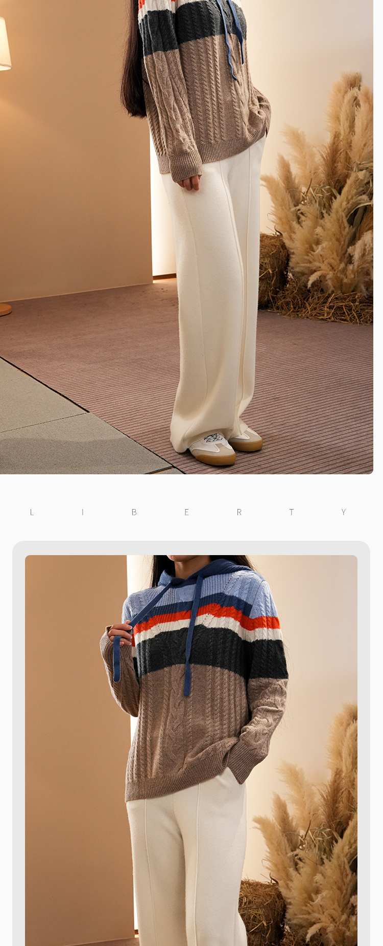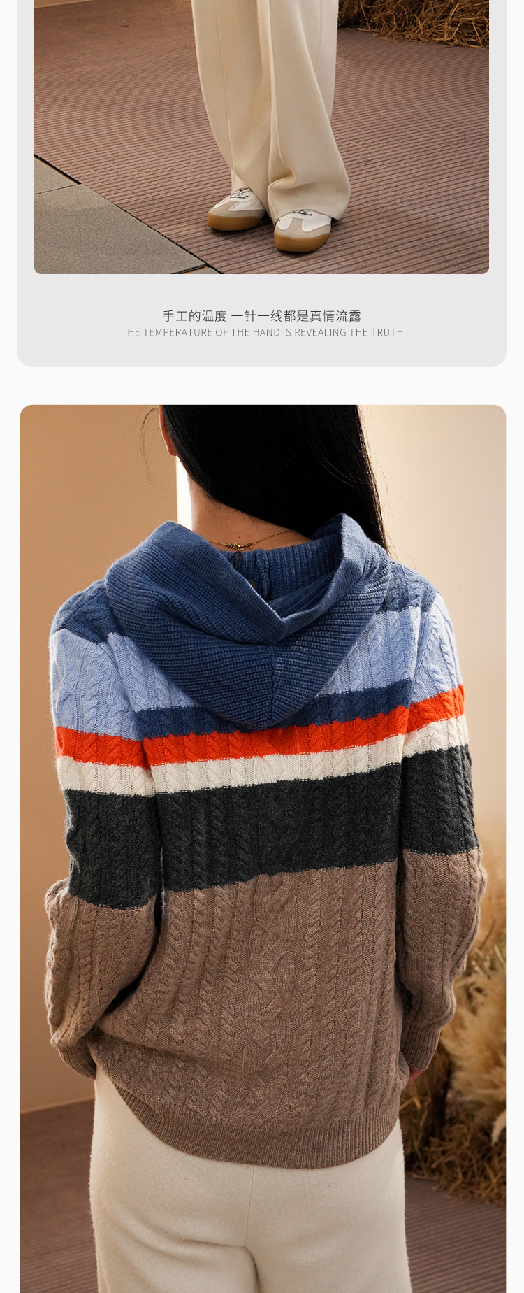 DONGLI&张继成联名款 山羊绒 女士秋冬针织连帽卫衣宽松撞色绞花220421