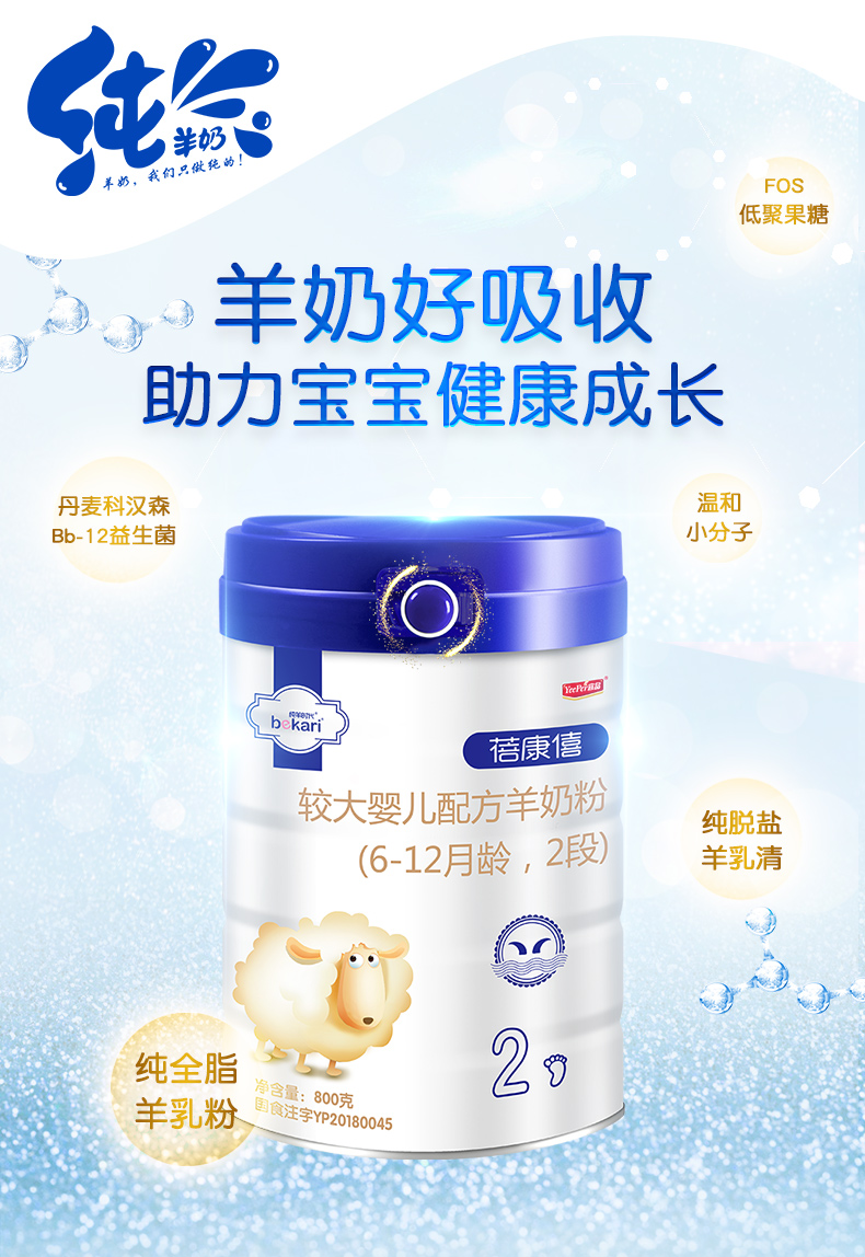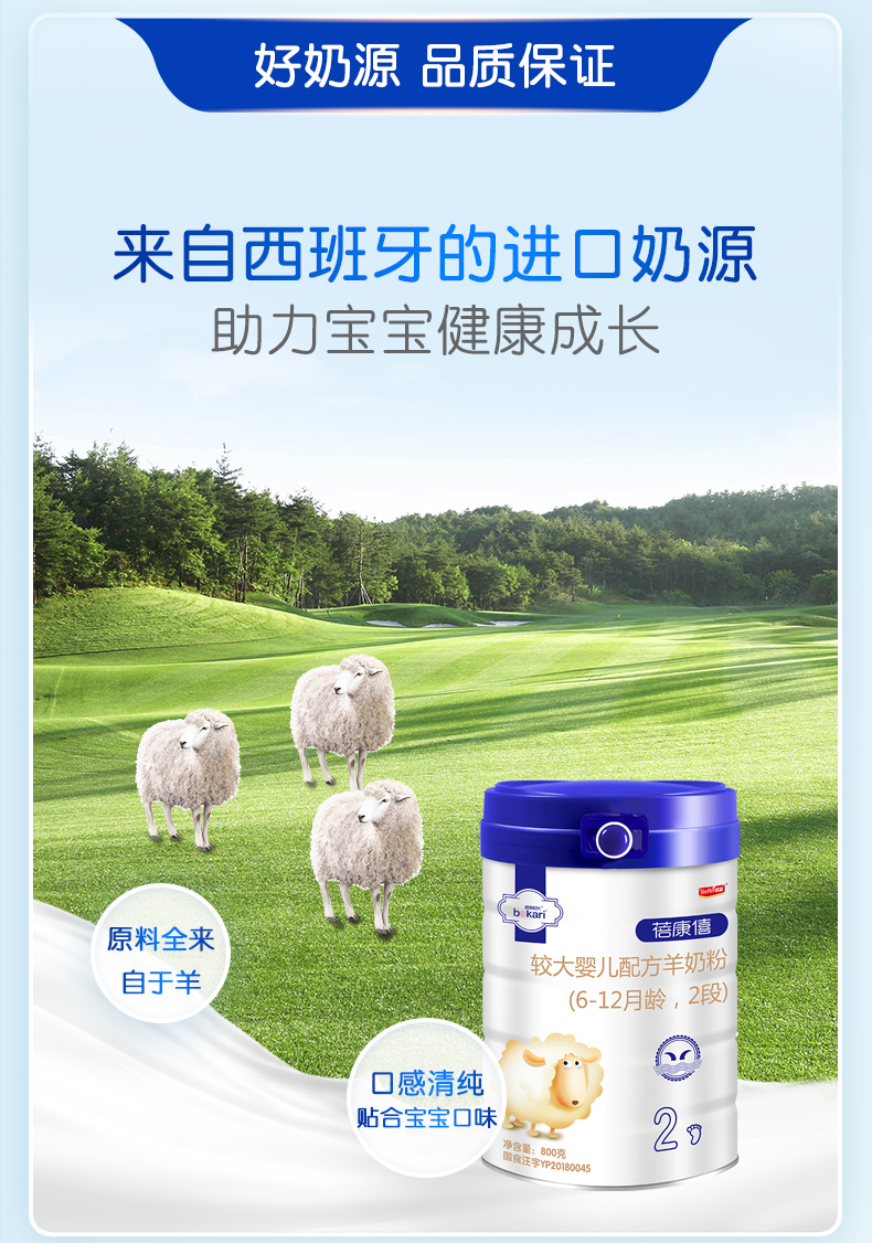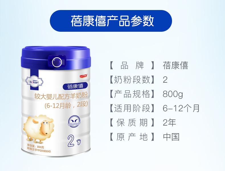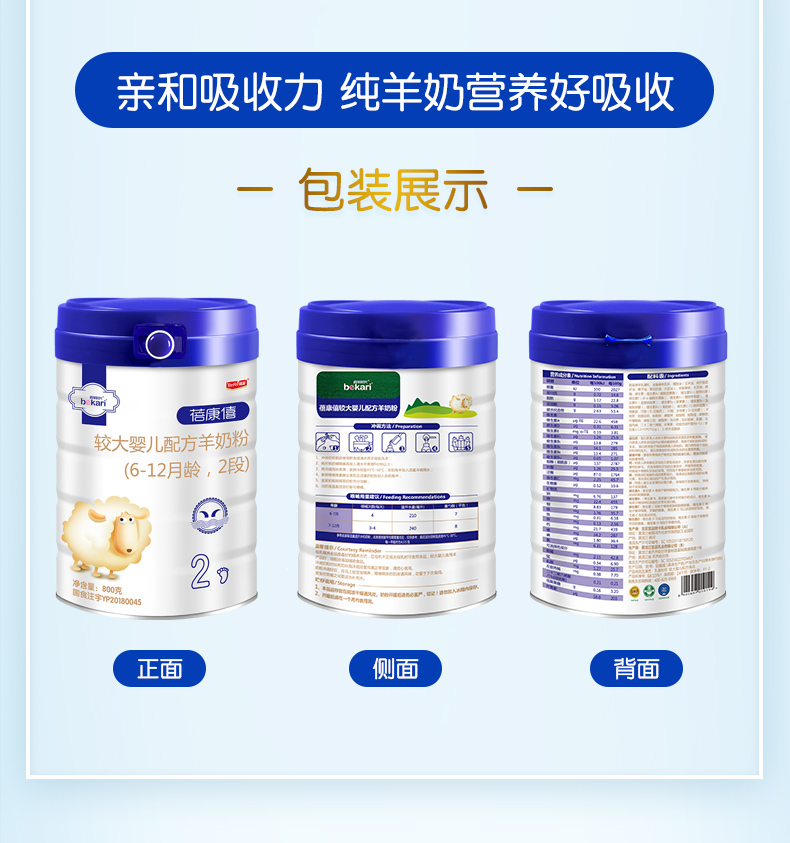 蓓康僖(bekari)纯绵羊奶粉 2段(6-12月适用)婴幼儿羊奶粉 800g*6罐套装【蓓康僖】