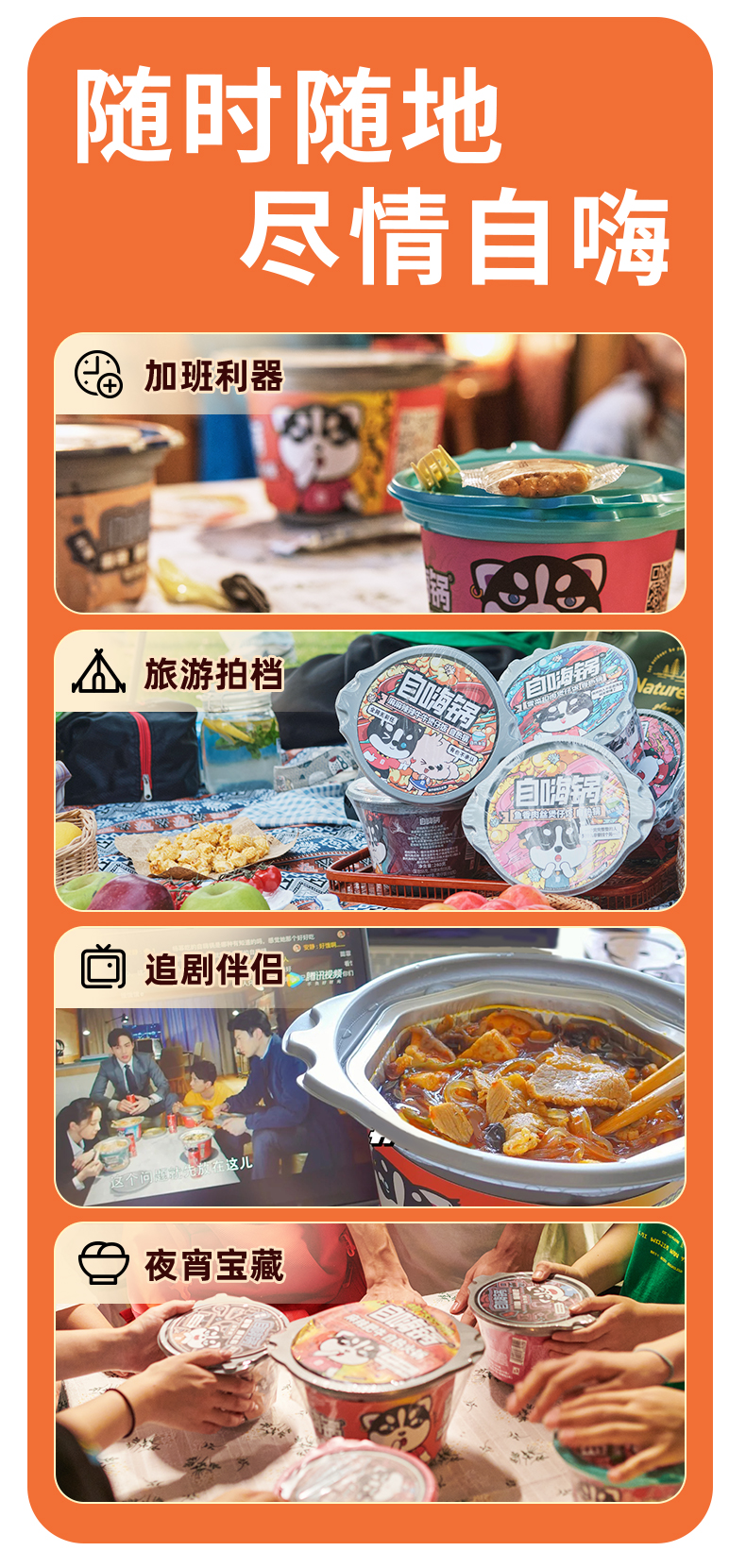 - 自嗨锅,互联网餐饮倡导者。自嗨锅代表着这么一群人,他们懒得戴上面具去迎合别人,不在乎别人的眼光,敢于做自己,追求自由,且无论在人群中还是独处时都可以随时随地的嗨起来。