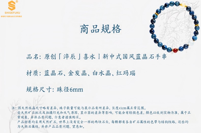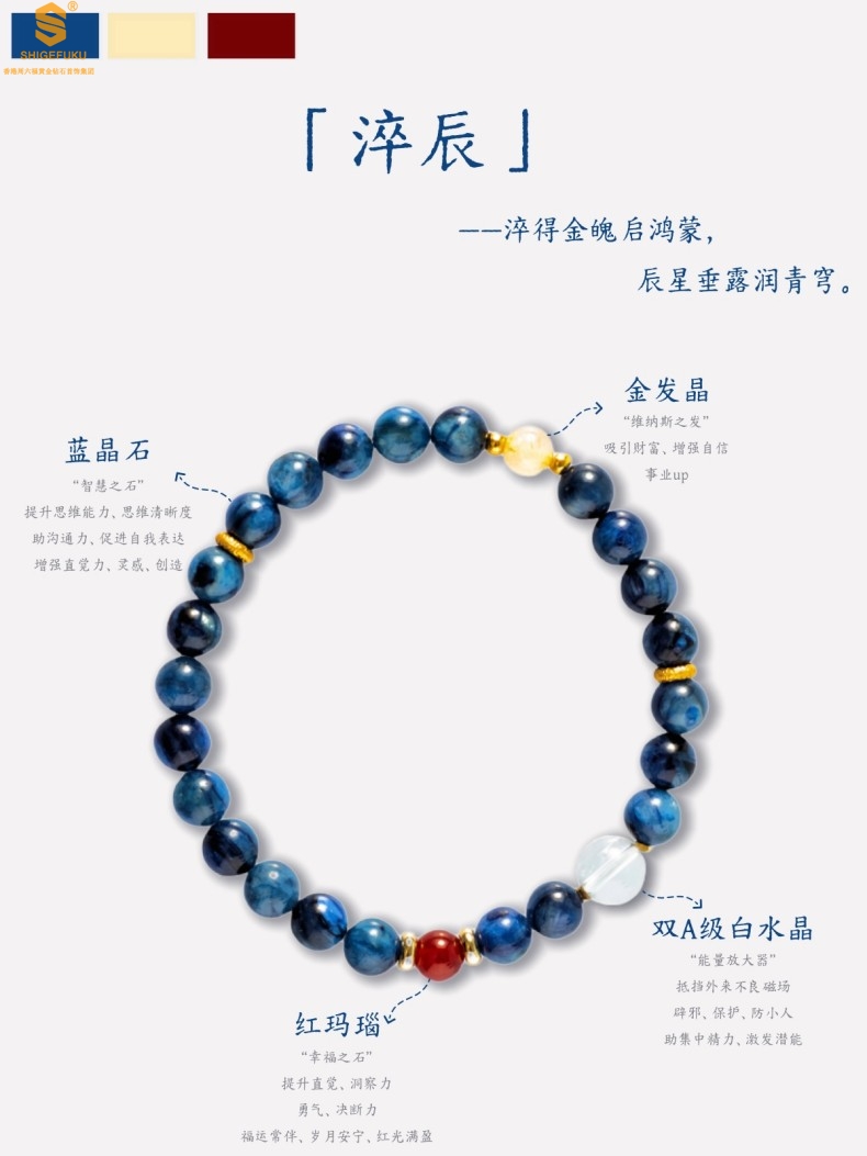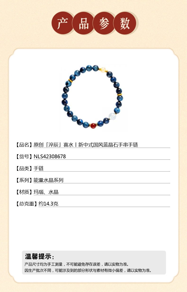 【品名】原创「淬辰」喜水丨新中式国风蓝晶石手串手链