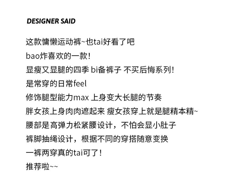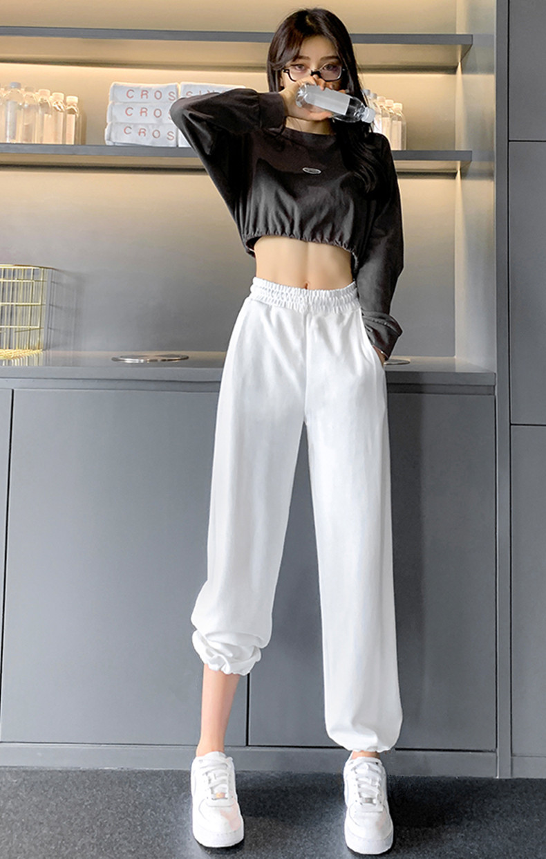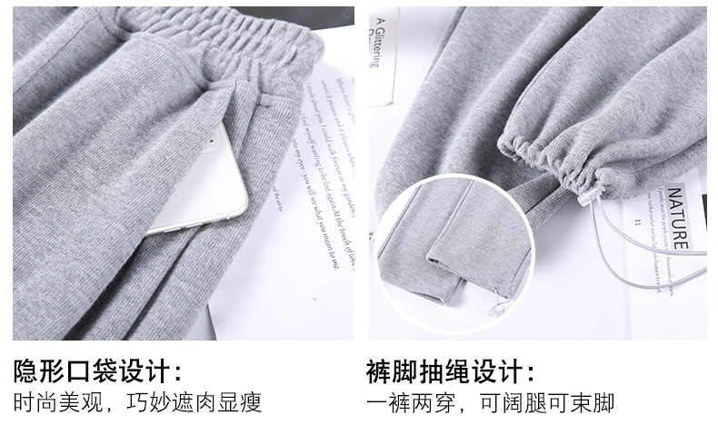 【可阔腿可束脚,时尚两穿运动卫裤!】灯笼阔腿+松紧抽绳,轻松拉长腿部比例,显高显瘦,舒适棉质面料,定制两款长度,不挑身材!