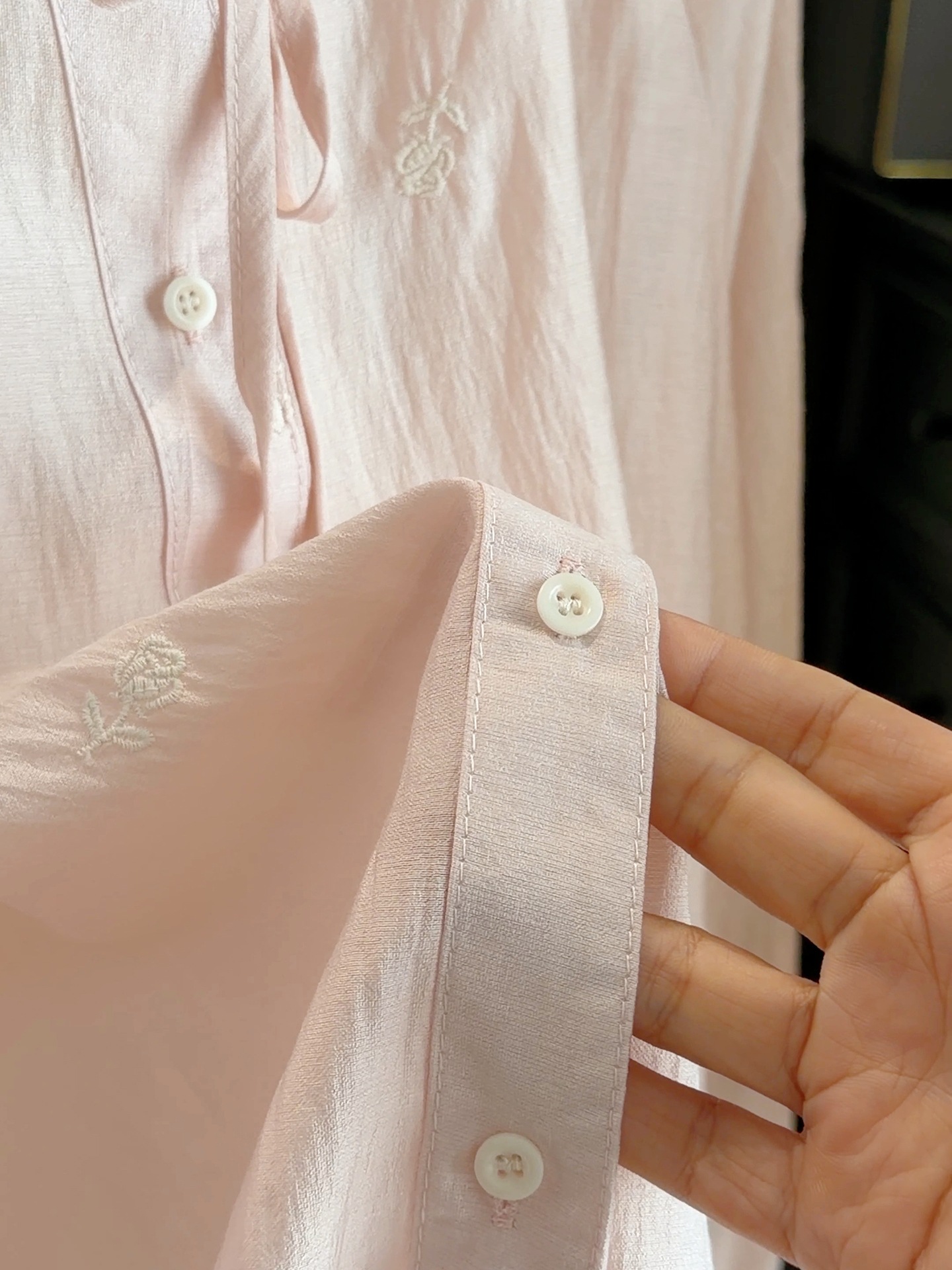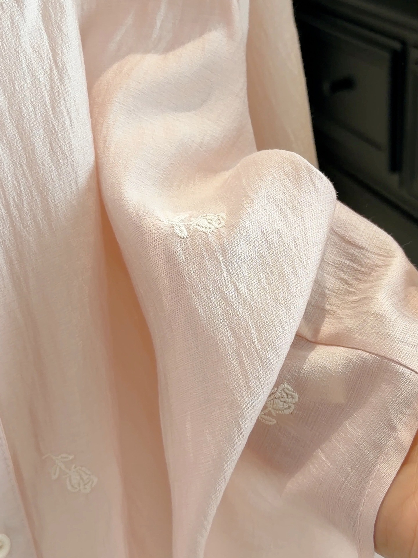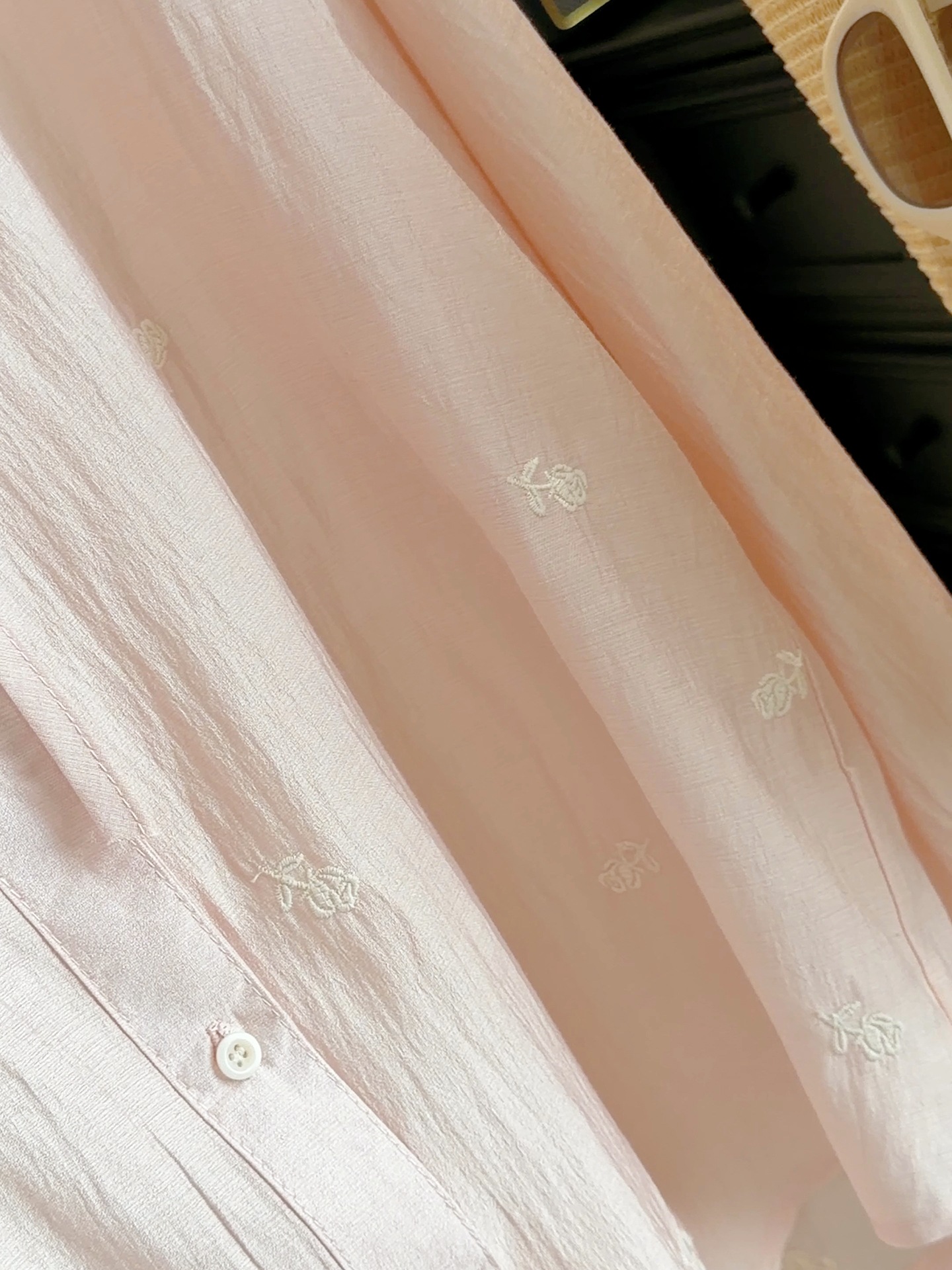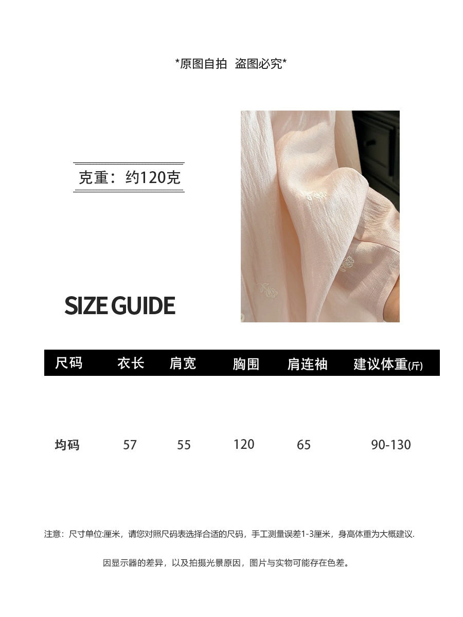 【韩版复古灯笼袖】显瘦玫瑰刺绣衬衫 春新款 木耳边绑带宽松防晒上衣