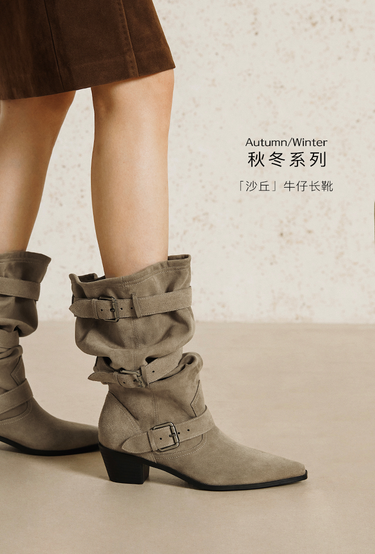 对面duimian秋冬靴子堆堆靴沙丘牛仔长靴
