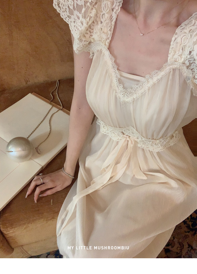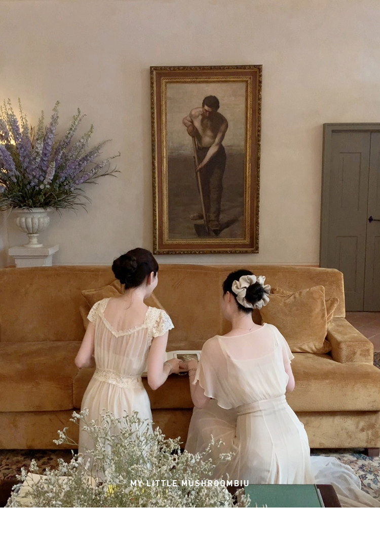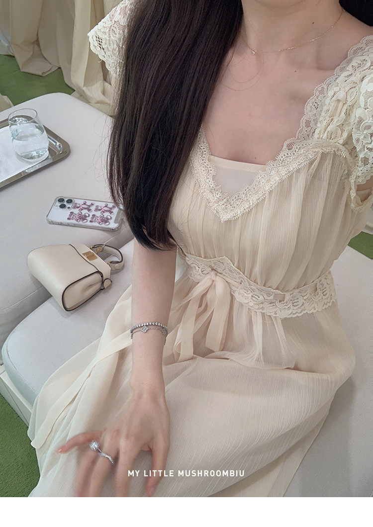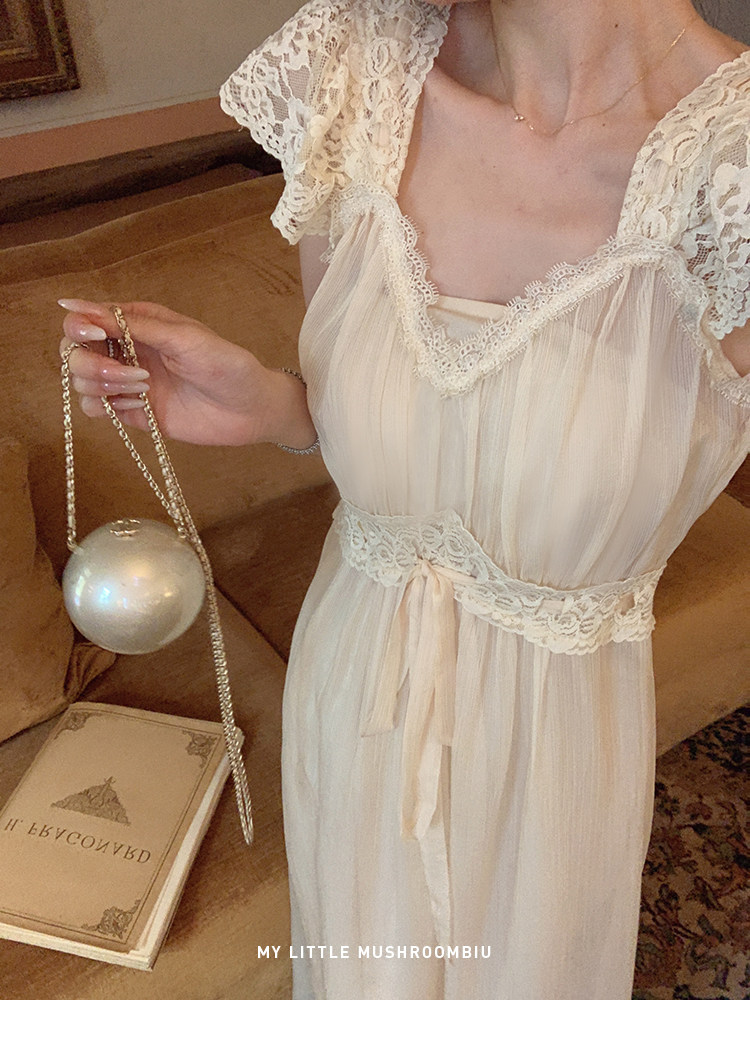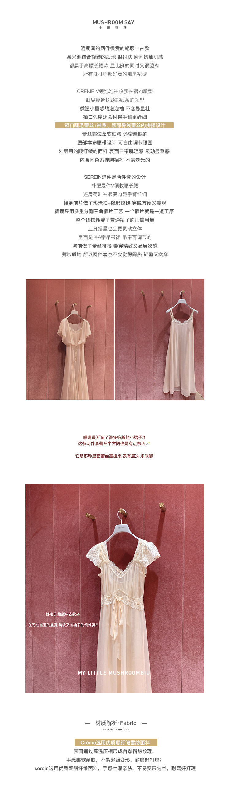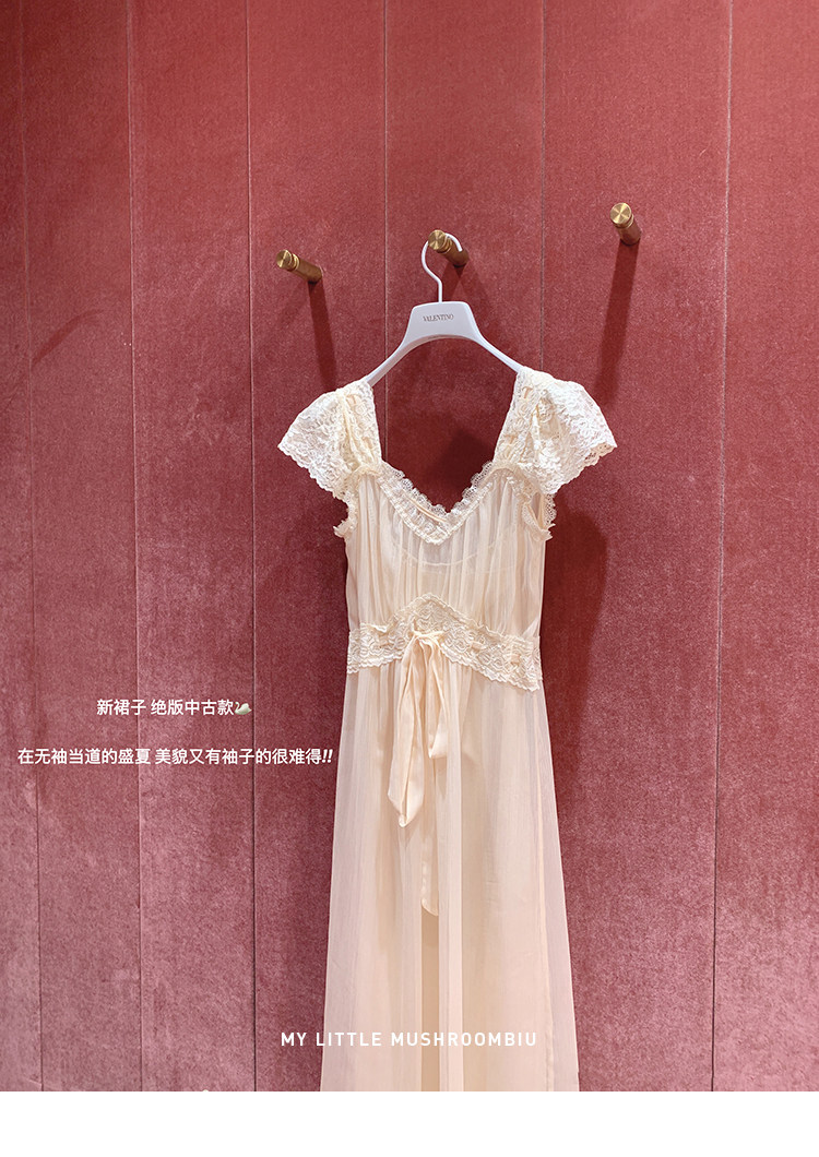 金蘑菇菇 古董仲夏夜/美神 蕾丝拼接连衣裙