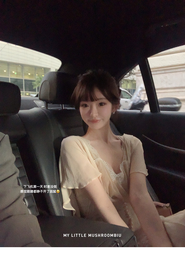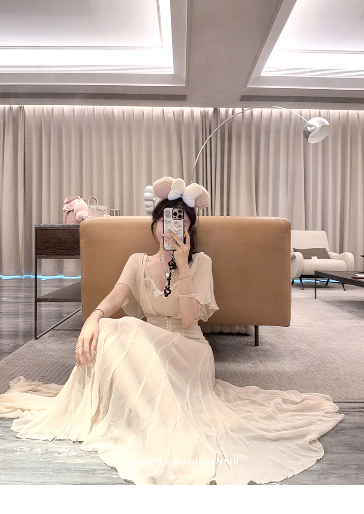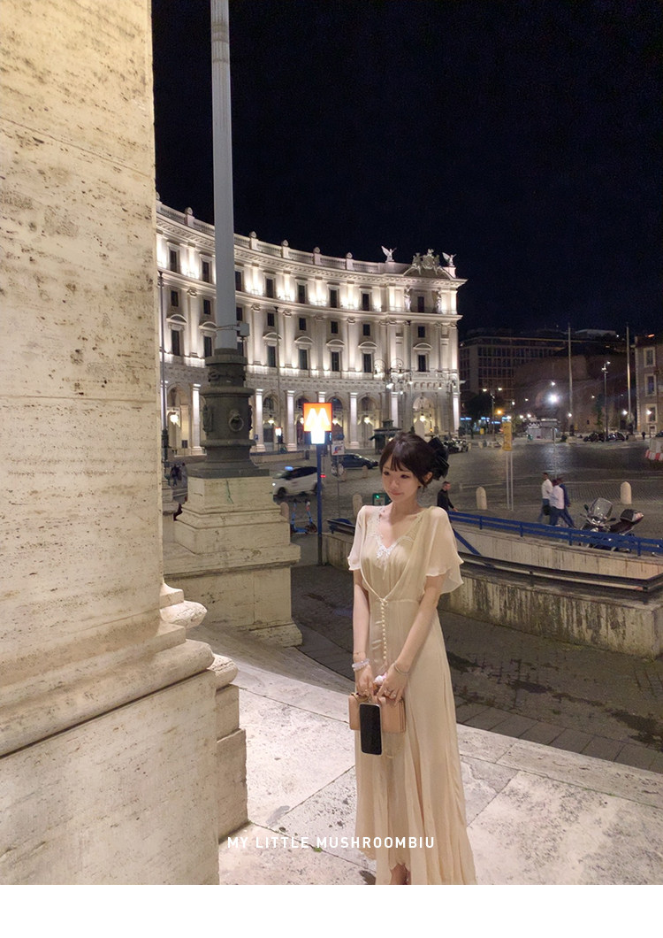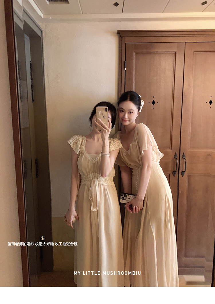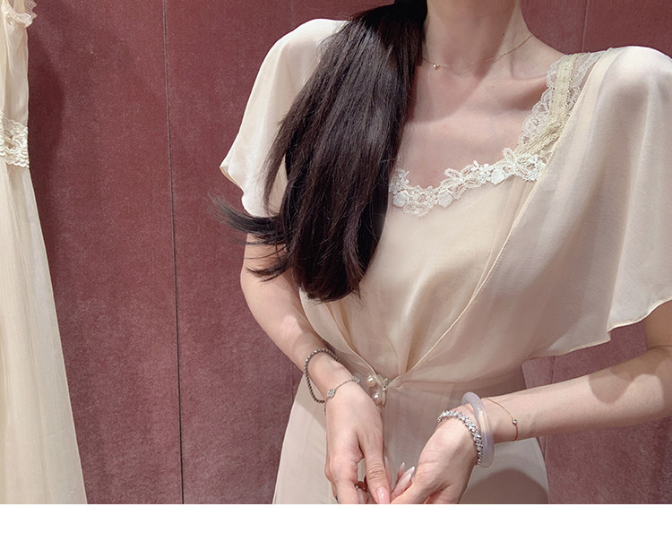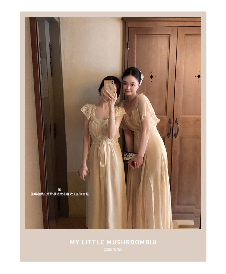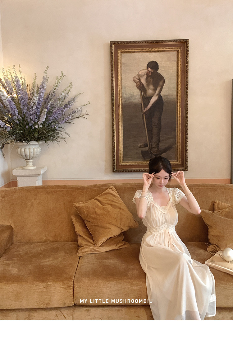 金蘑菇菇 古董仲夏夜/美神 蕾丝拼接连衣裙