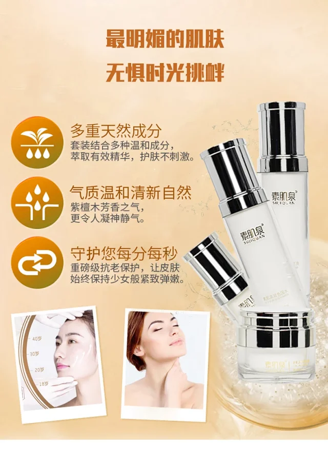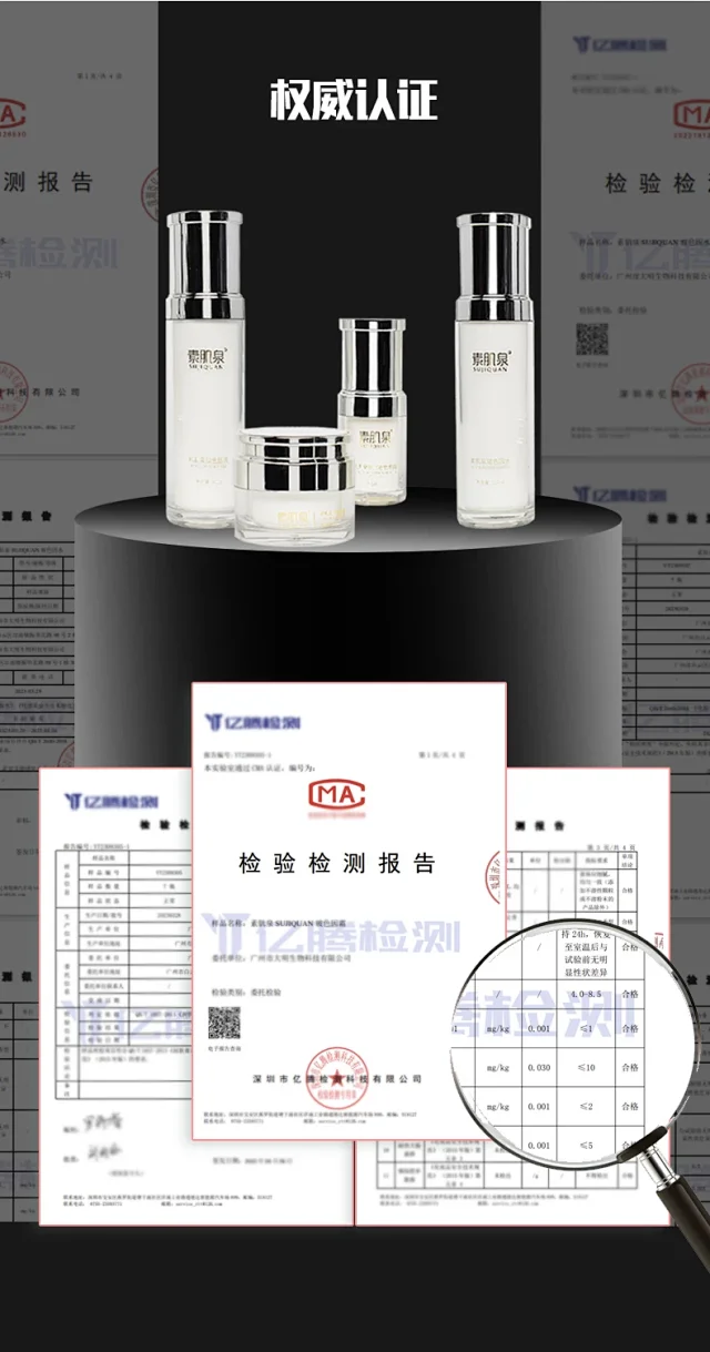 素肌泉系列产品,由全真教龙门派女道长依祖师秘传方子、由广州市大明生物科技有限公司生产,使用川椒果提取物、白头翁提取物、光滑罗松提取物,均为纯天然植物防腐。