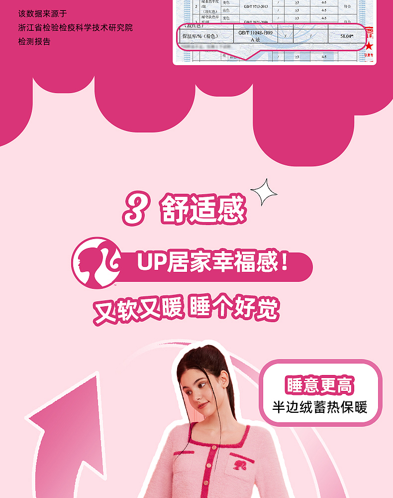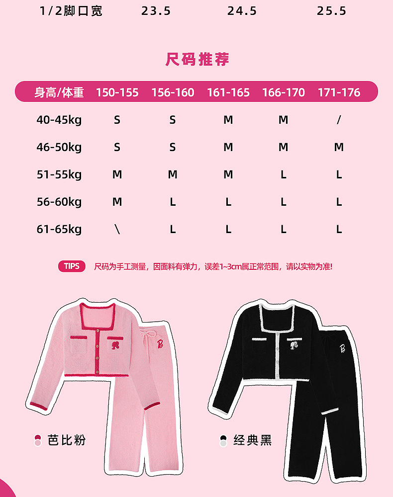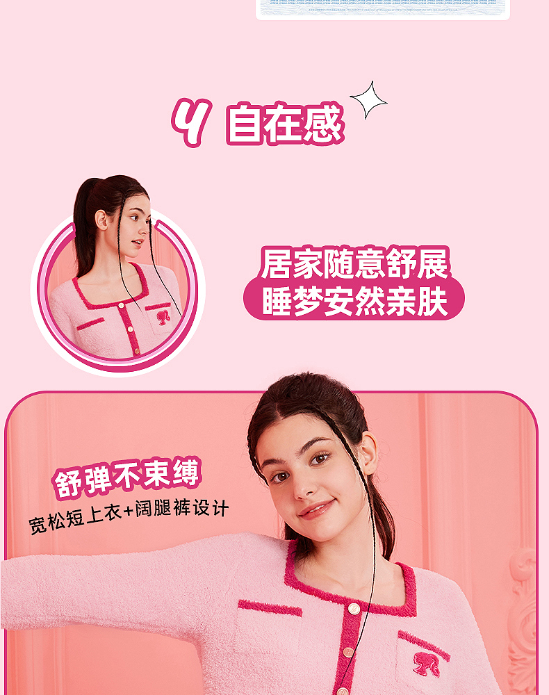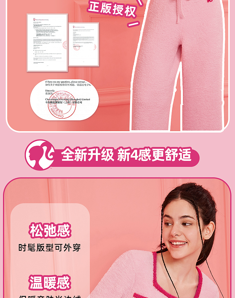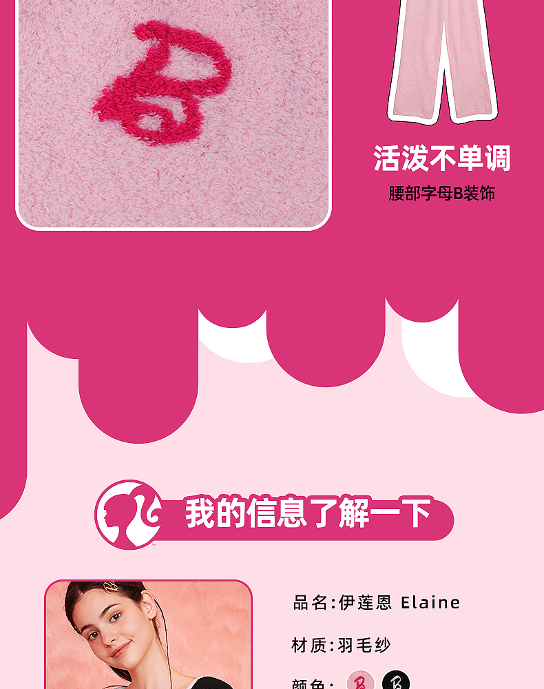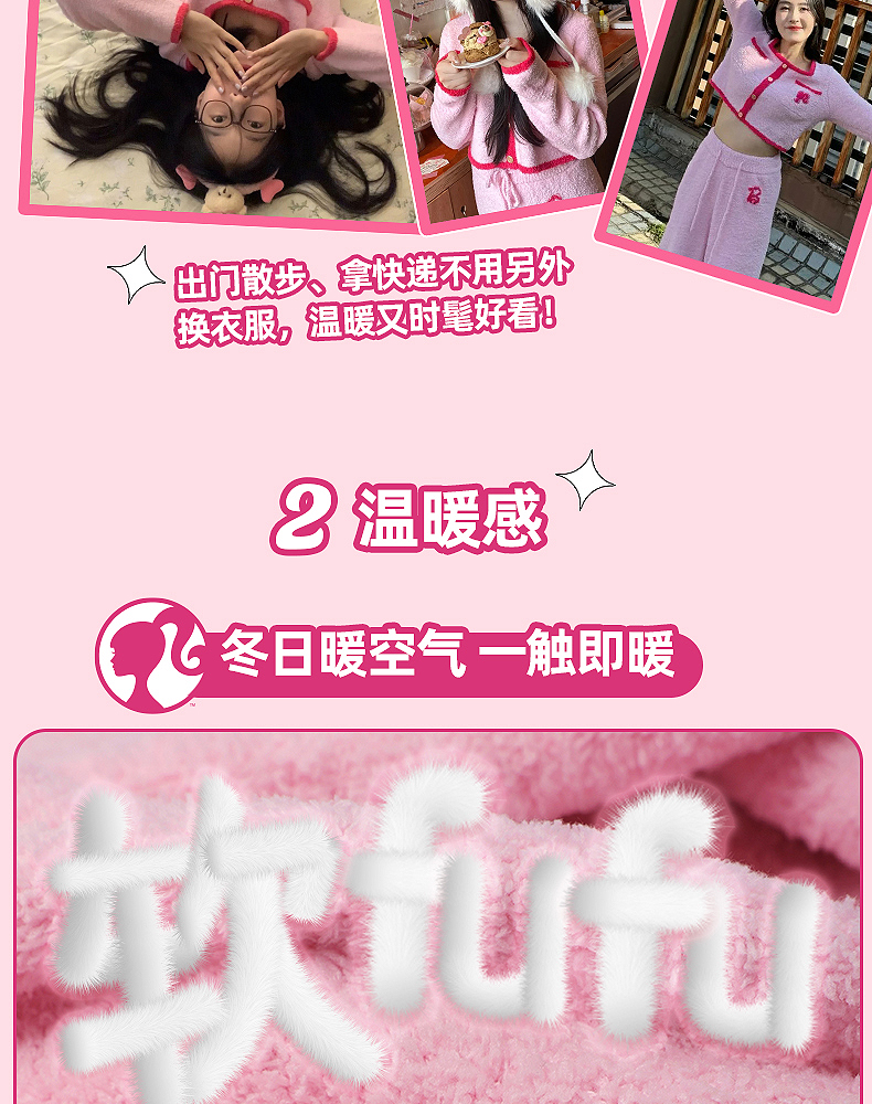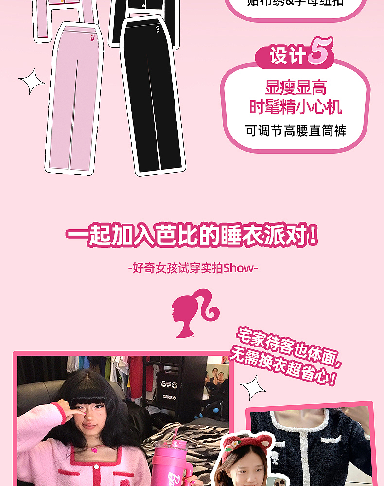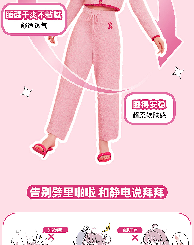 好奇蜜斯Barbie联名复古高腰小香风方领秋冬半边绒女士家居服套装 Elaine 伊莲恩