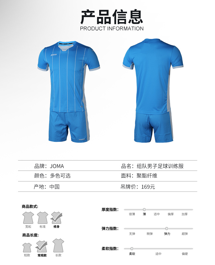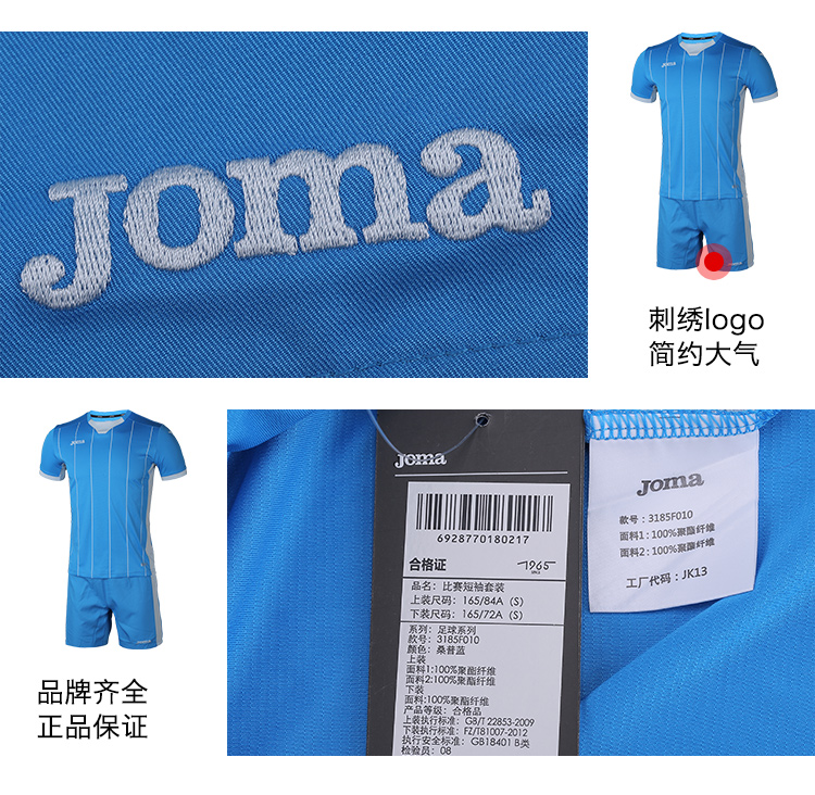 【3套以上,每满200减20】小李子:专柜正品joma足球运动光板组队球衣训练比赛服短袖套装男
