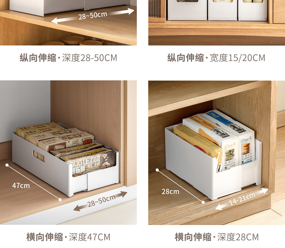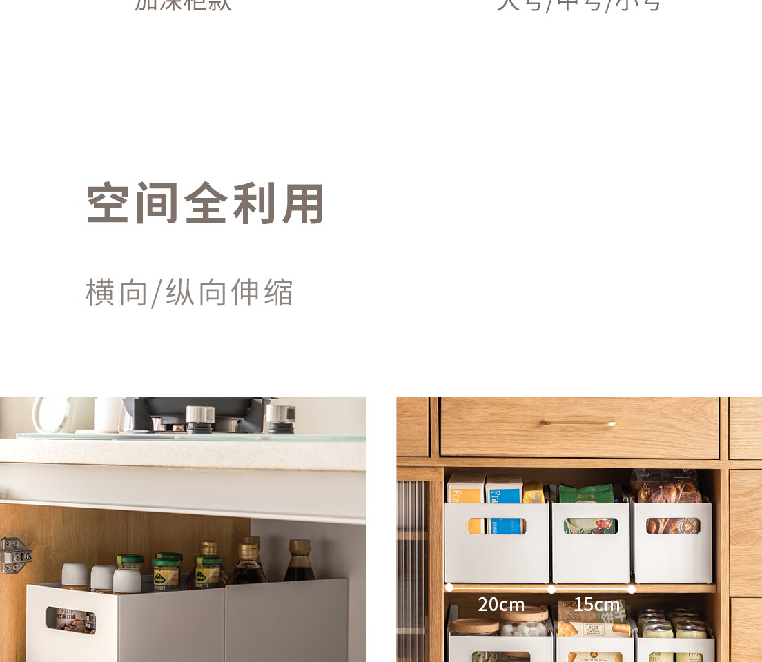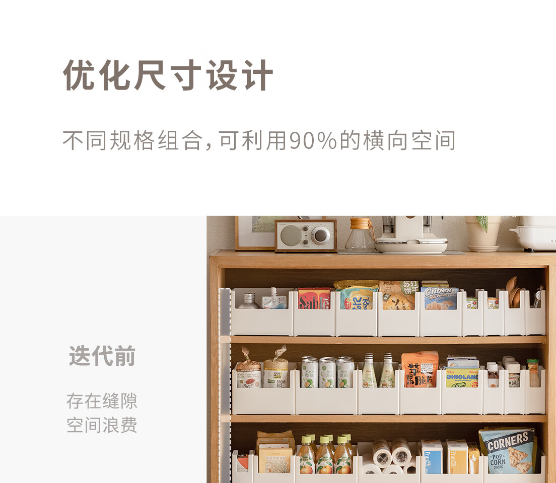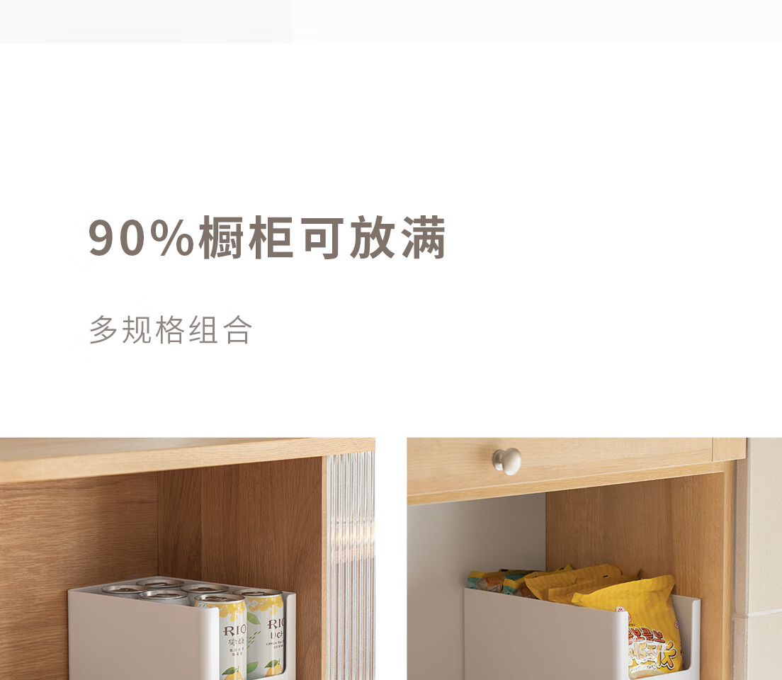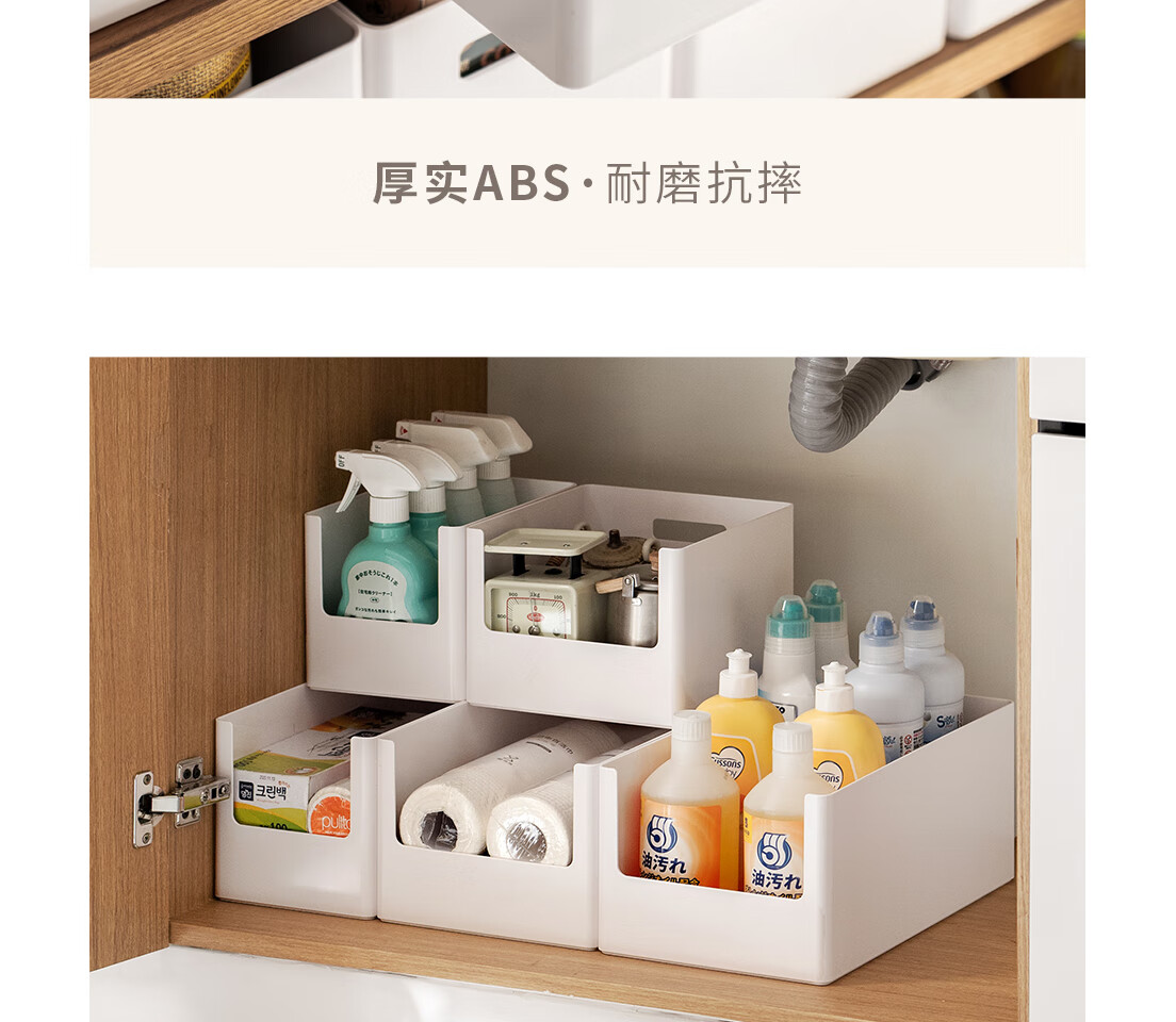 懒角落 橱柜收纳盒直角长方形厨房桌面整理盒子杂物零食收纳储物筐/个