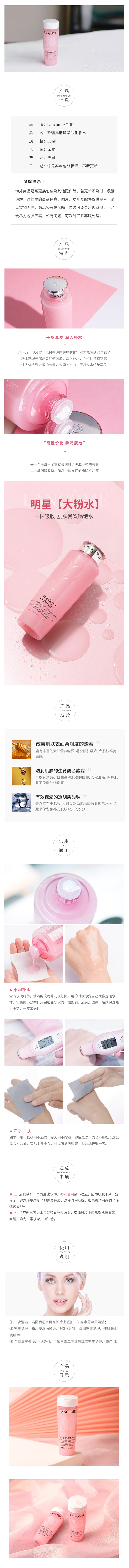 法国兰蔻粉水中样50ml 清滢柔肤水保湿爽肤水化妆水大粉水