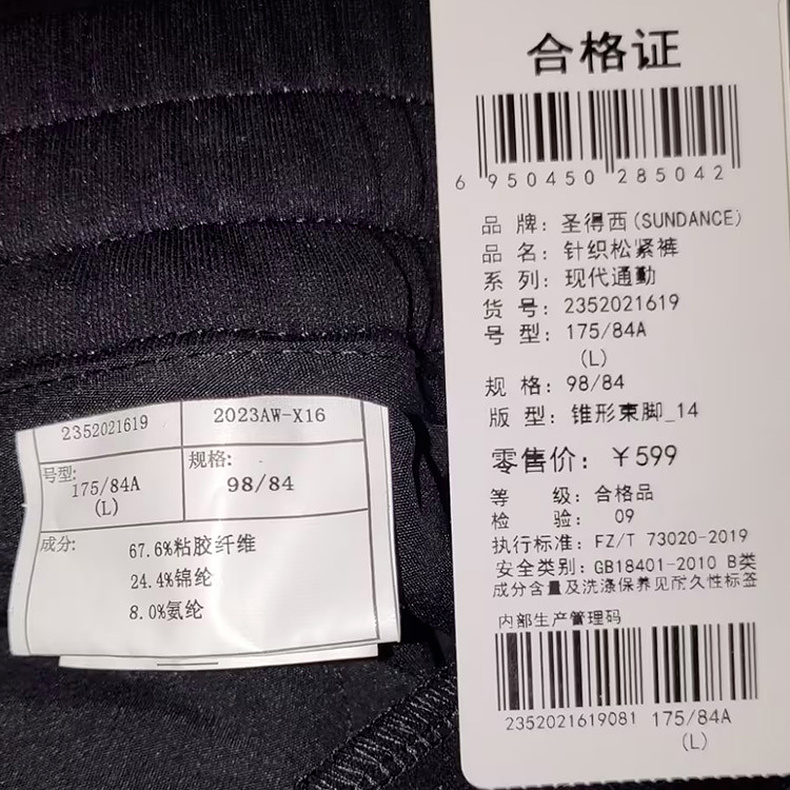 【门店同款】圣得西松紧休闲裤2026年春季新款青年男款束脚长裤